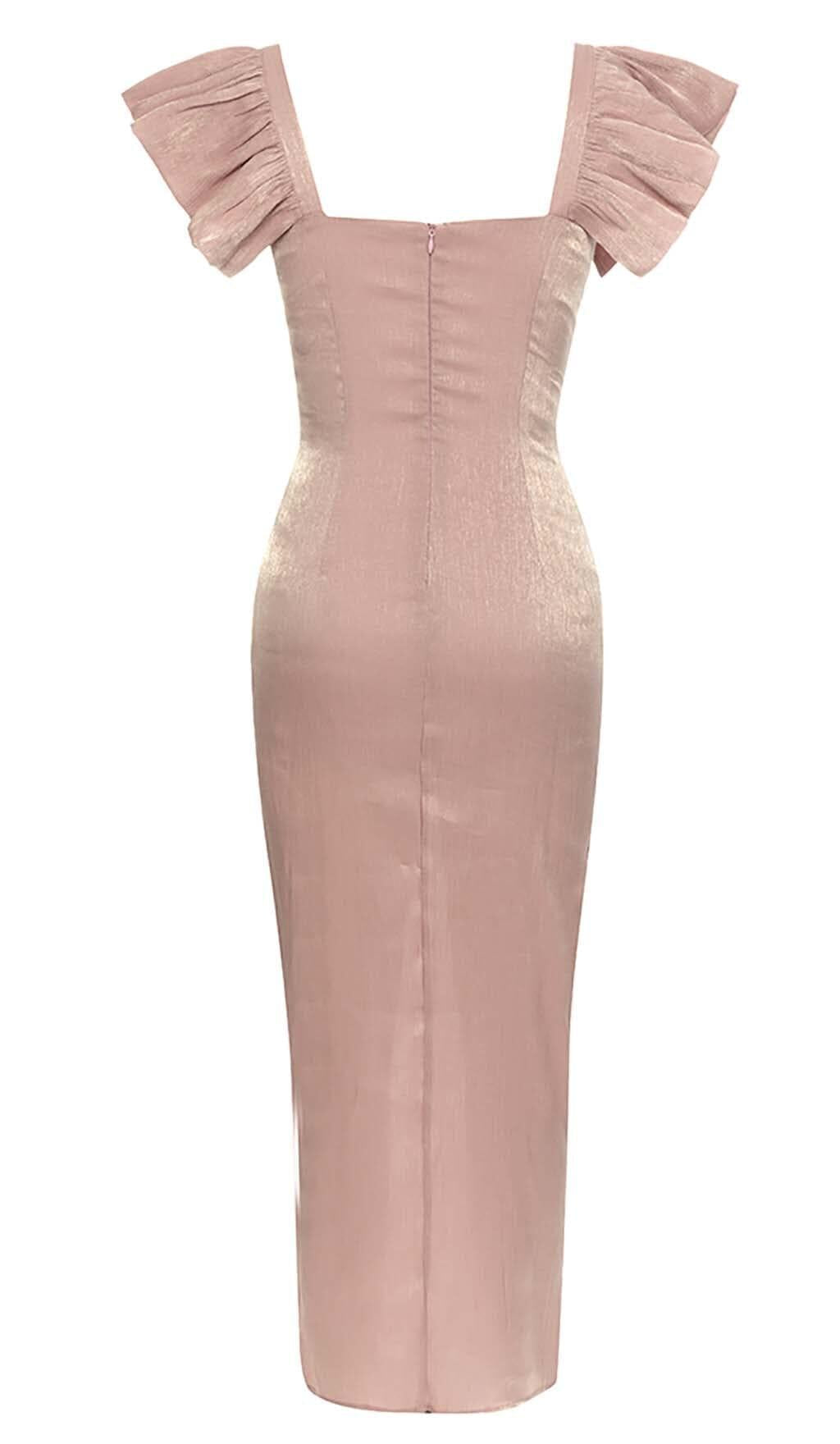 SQUARE NECK BUTTERFLY SLEEVE SPLIT THIGH DRESS