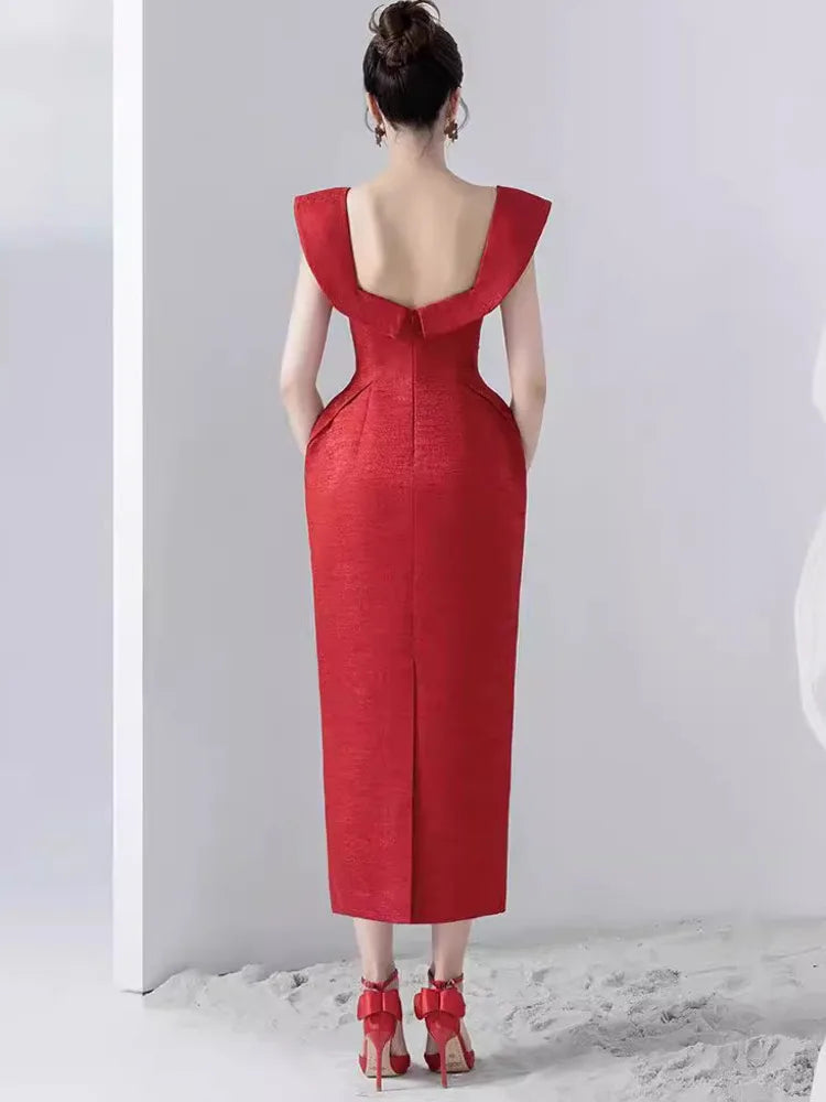 This square neckline bow midi dress in red is a versatile and elegant addition to any wardrobe. With its flattering square neckline and delicate bow detail, this dress is perfect for any formal occasion or evening event. Made with high quality fabric, it offers both comfort and style.