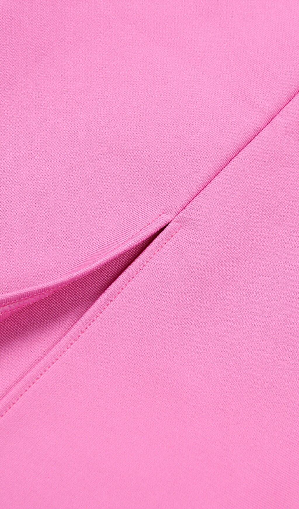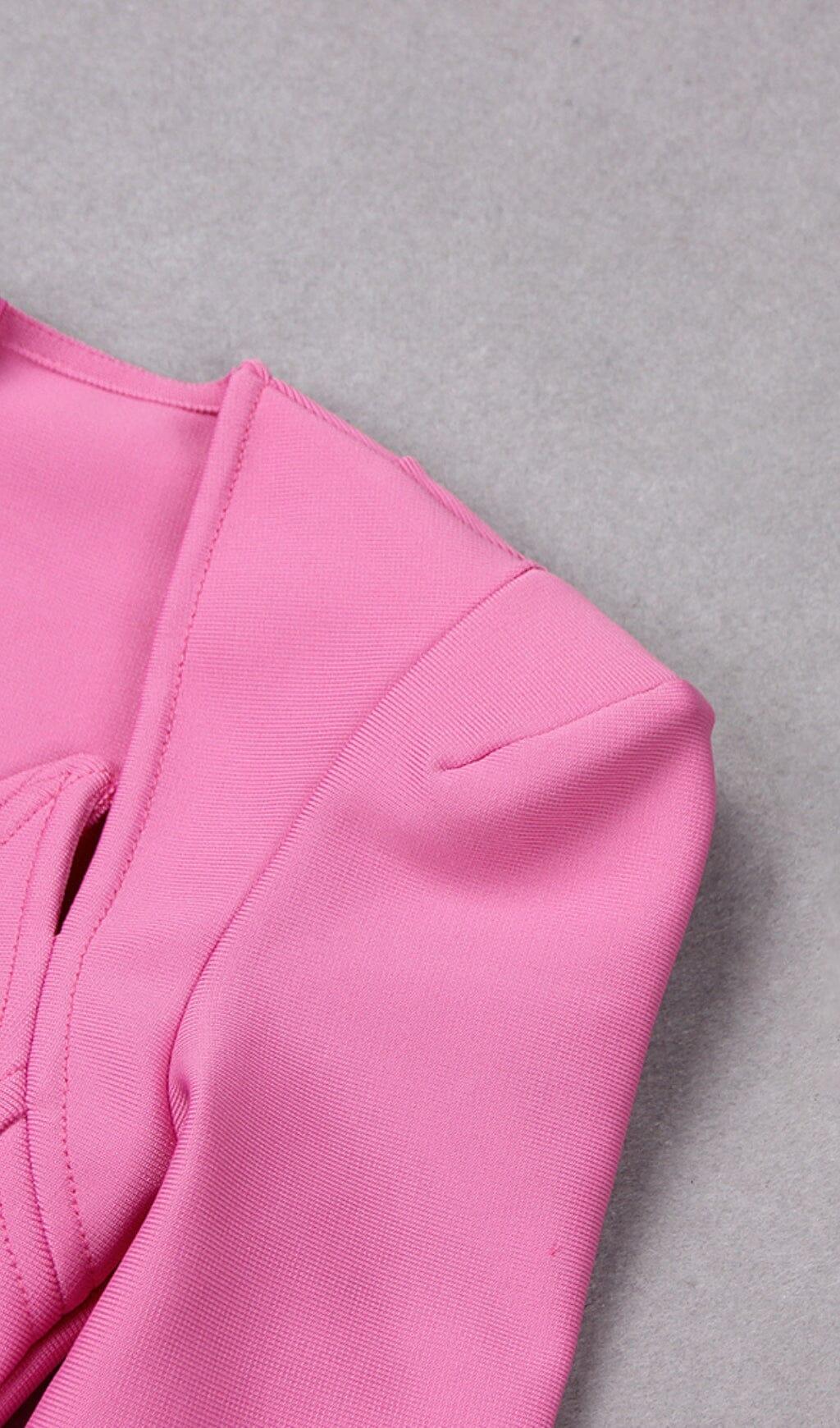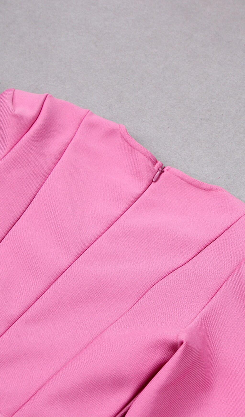 SQUARE SHOULDER CORSET MIDI DRESS IN PINK