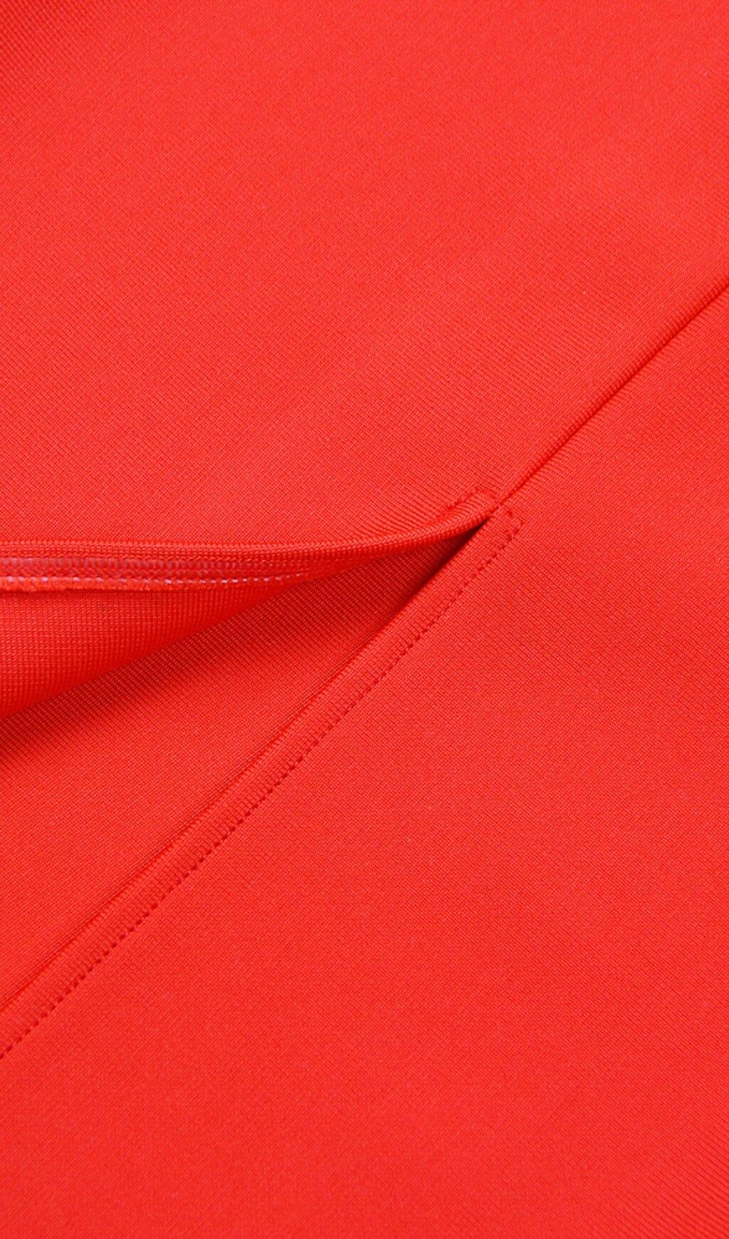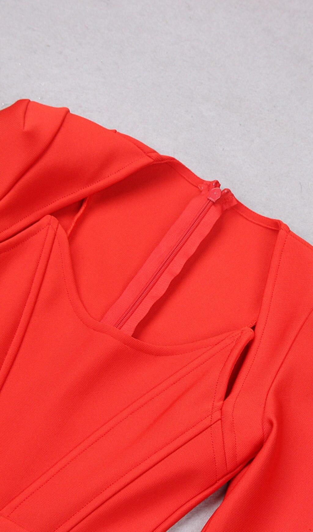 SQUARE SHOULDER CORSET MIDI DRESS IN RED