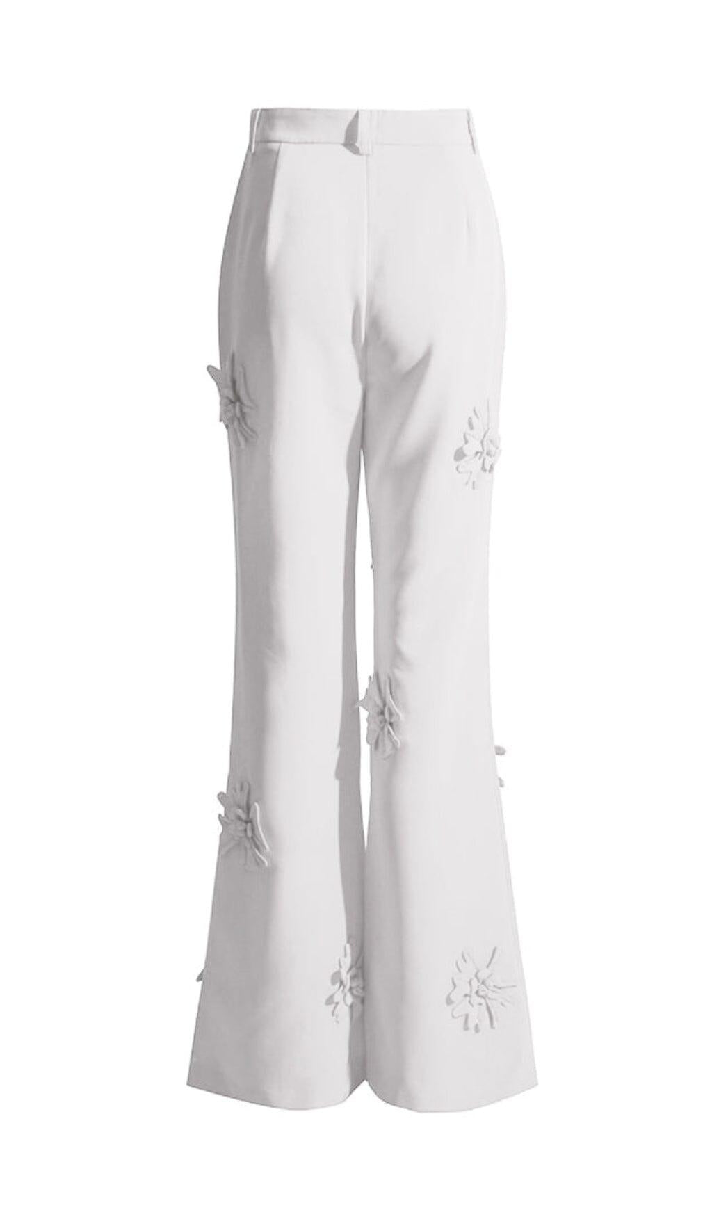 The STEREO FLOWER MID-RISE JEANS IN WHITE are not your ordinary pair of jeans. With their bold and eye-catching design, these jeans are sure to make a statement wherever you go. The unique three-dimensional flower inlays on the fabric add a touch of fashion and elegance, making these jeans stand out from the crowd.