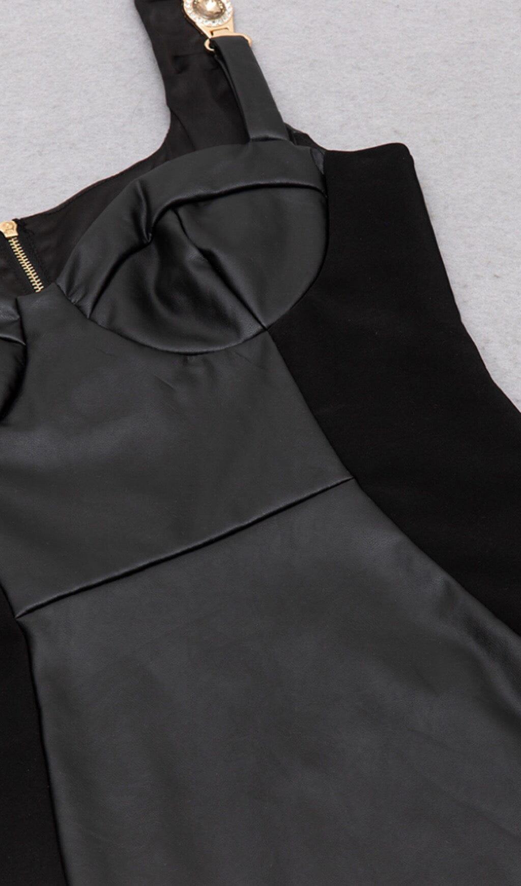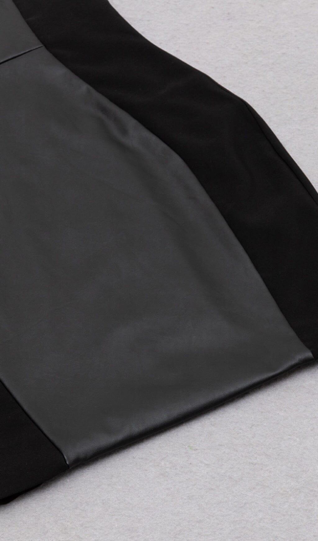 STITCHED LEATHER TIGHT MINI DRESS IN BLACK