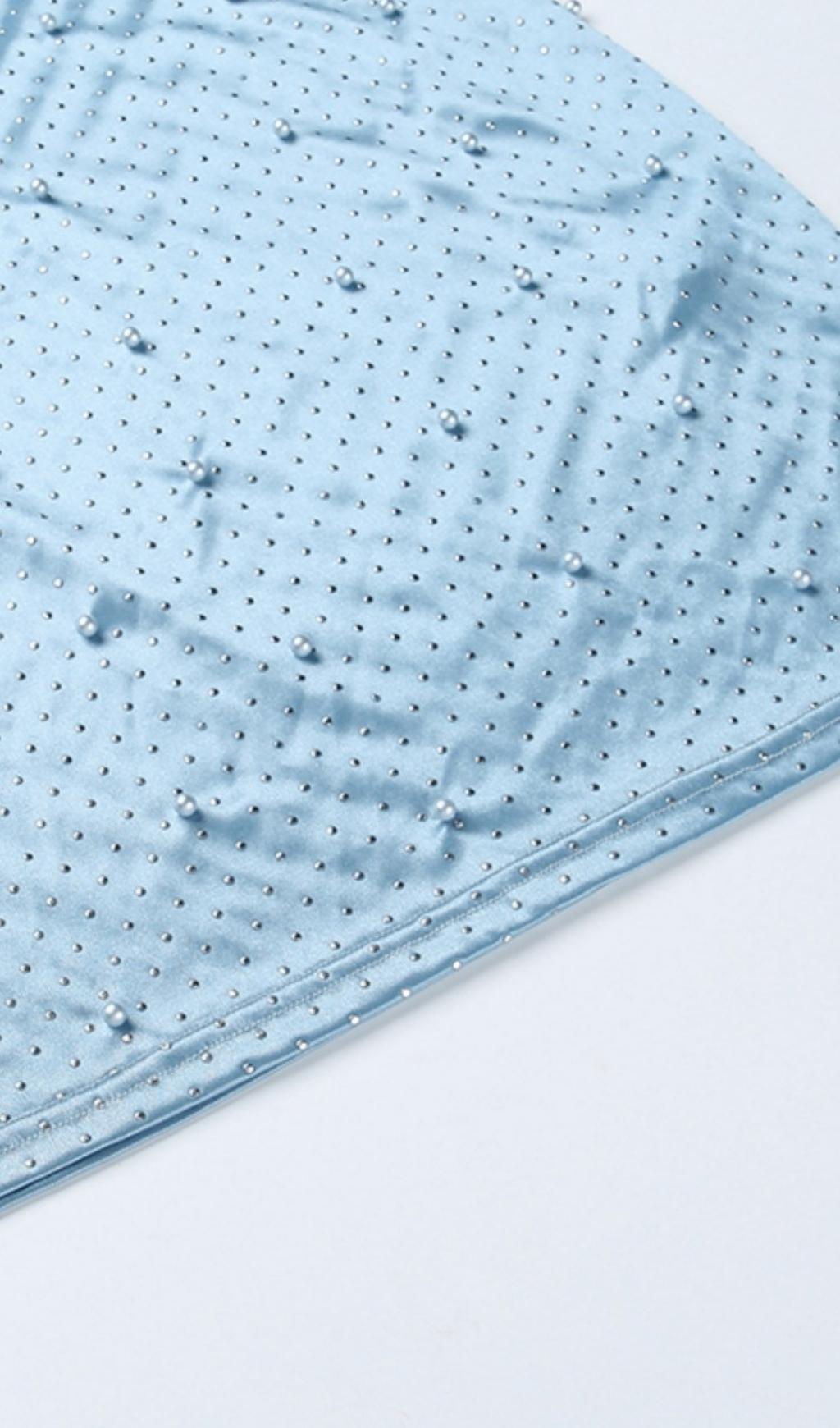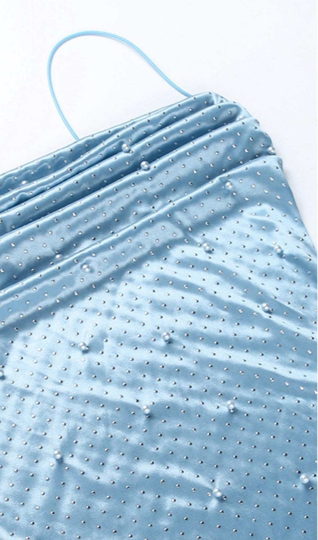 Introducing our Strap Bodycon Mini Dress in Blue, the perfect combination of chic and playful vibes. This dress features an incredibly corseted bodice that fits perfectly at the waist and under the bust, accentuating your curves in all the right places. The dress elegantly sweeps past your hips, providing a flattering silhouette that is sure to turn heads.