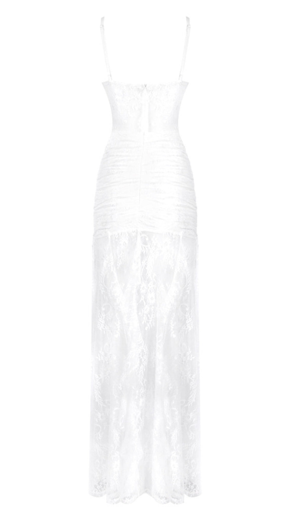Strapless Beaded Bustier Lace Maxi Dress in White