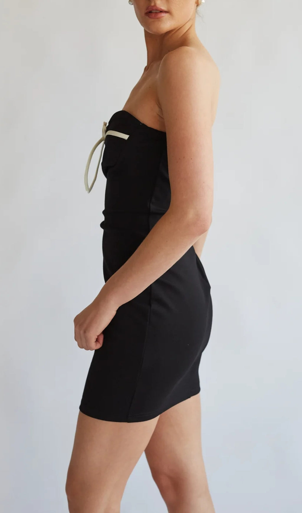 Oh so chic, the Strapless Bow Bodycon Mini Dress is the little black dress blueprint. Featuring a subtle sweetheart neckline, bustier cups with silicone grips, and high contrast white bow bodice detail, this semi-formal mini dress is R.S.V.P. worthy. Pair this timeless number with your favorite pair of heels and get ready to wow!