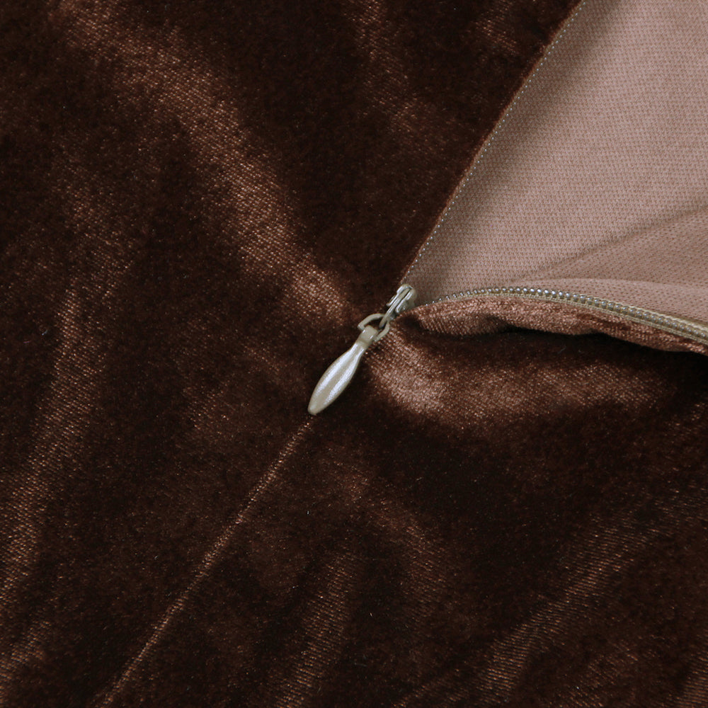 STRAPLESS BUSTIER FEATHER HEM MIDI VELVET DRESS BROWN