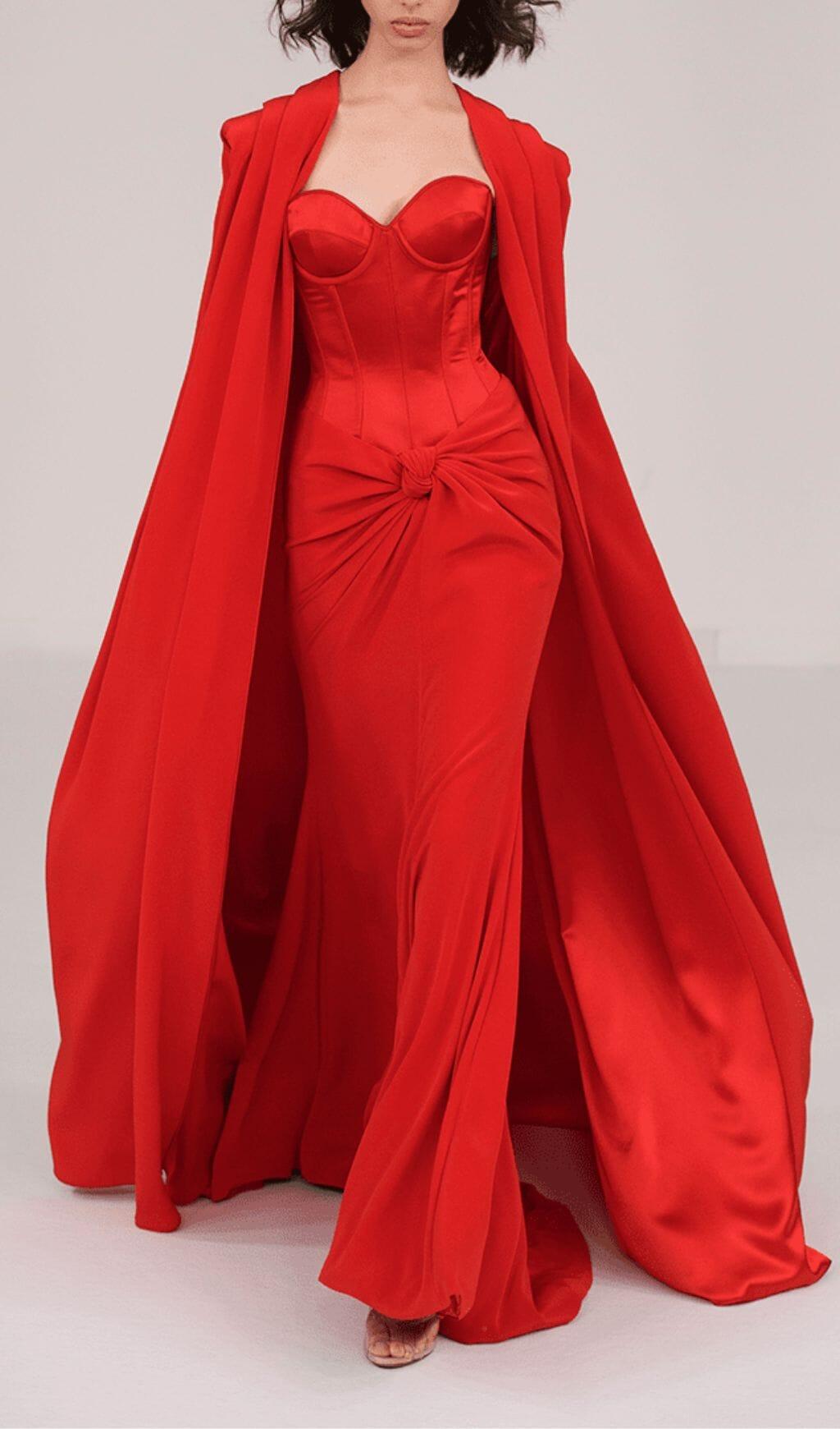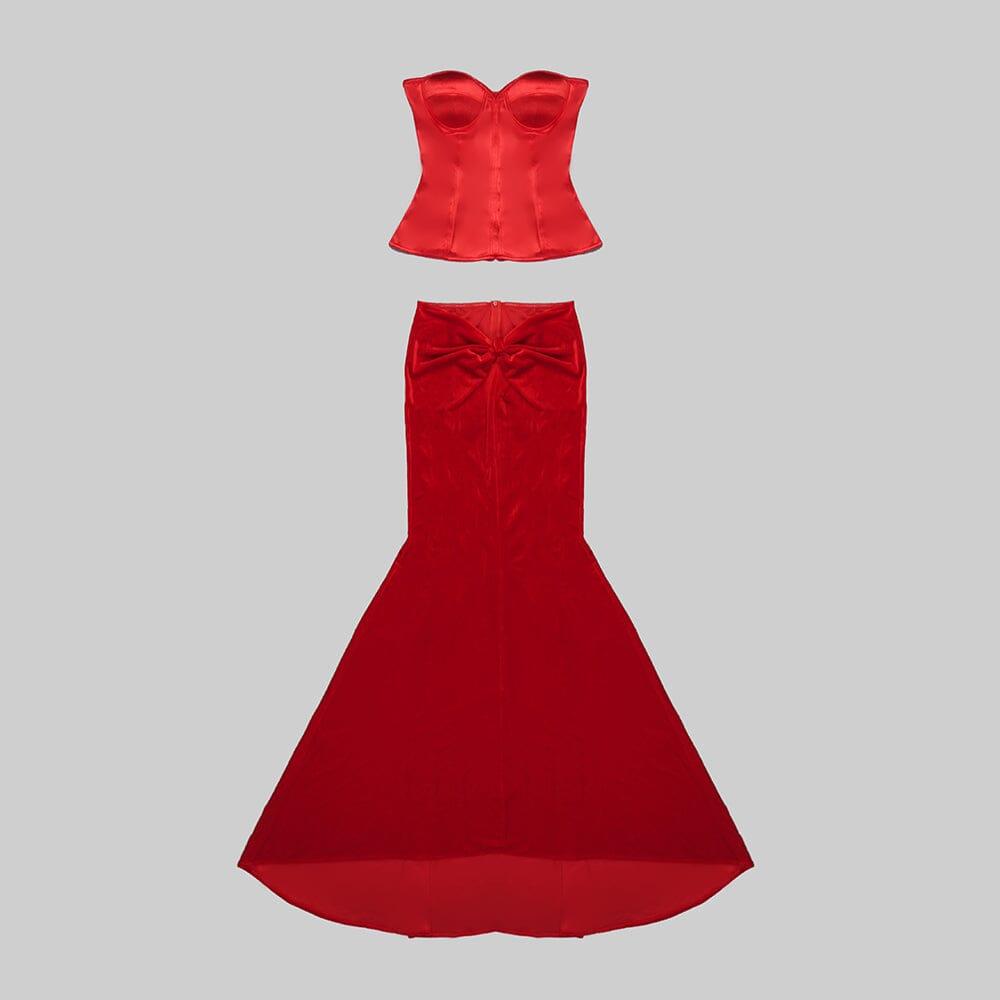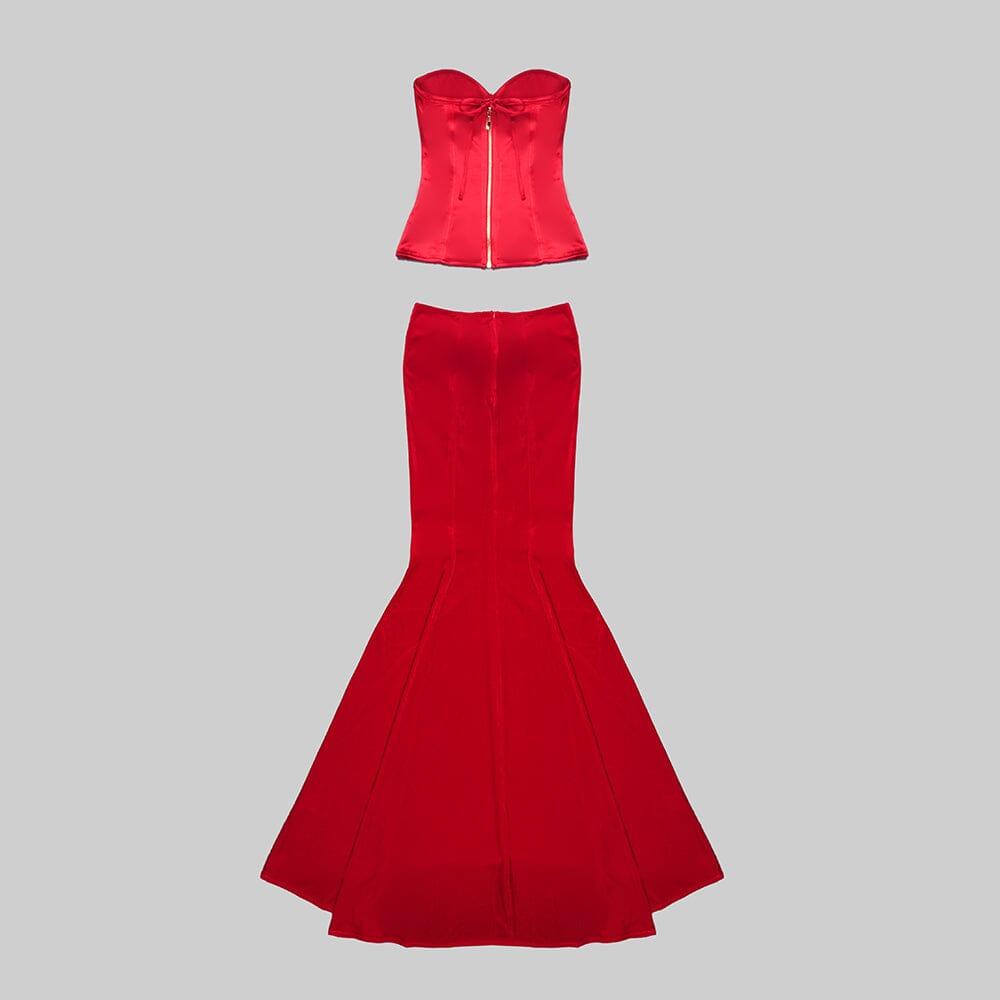 STRAPLESS CORSET TWO-PIECE DRESS IN RED