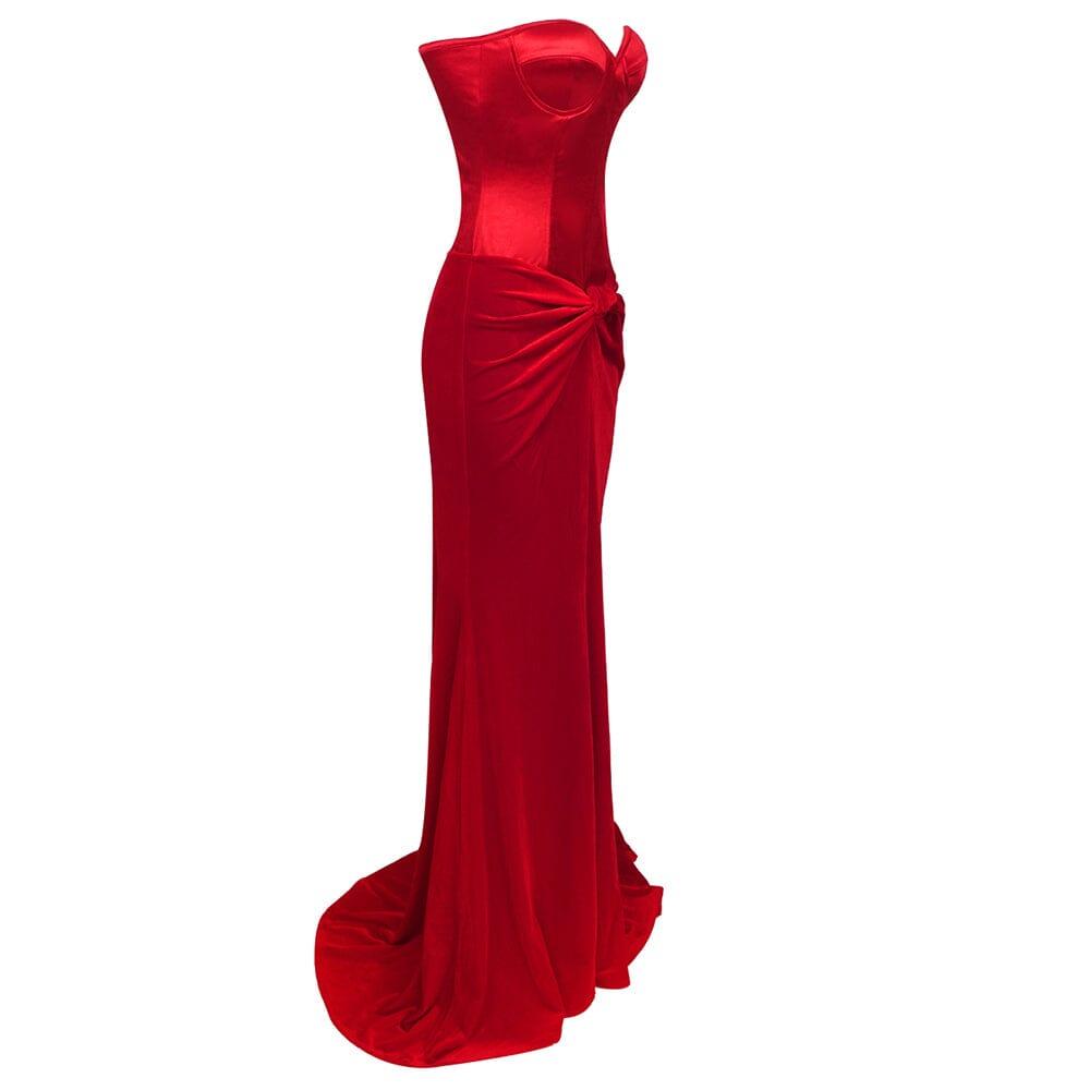 Elevate Your Style Game with the Strapless Corset Two-Piece Dress in Red