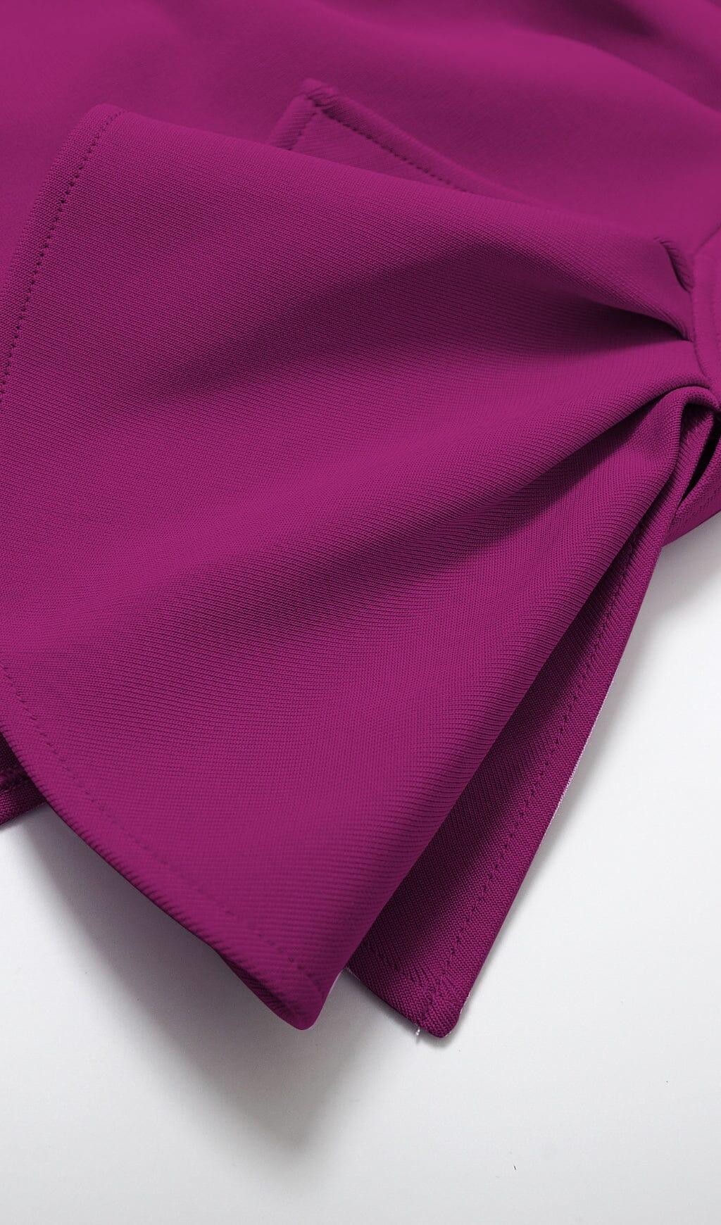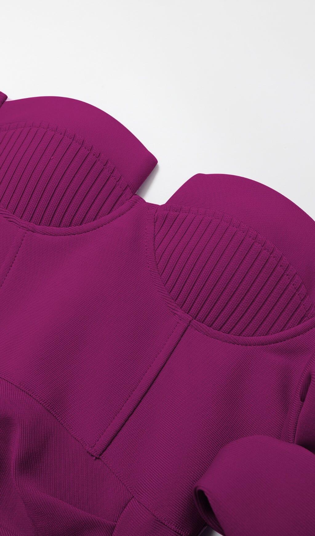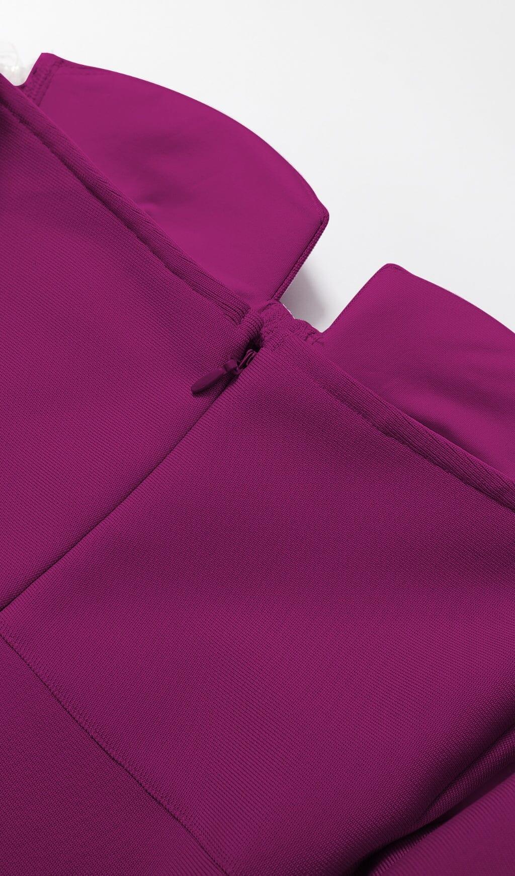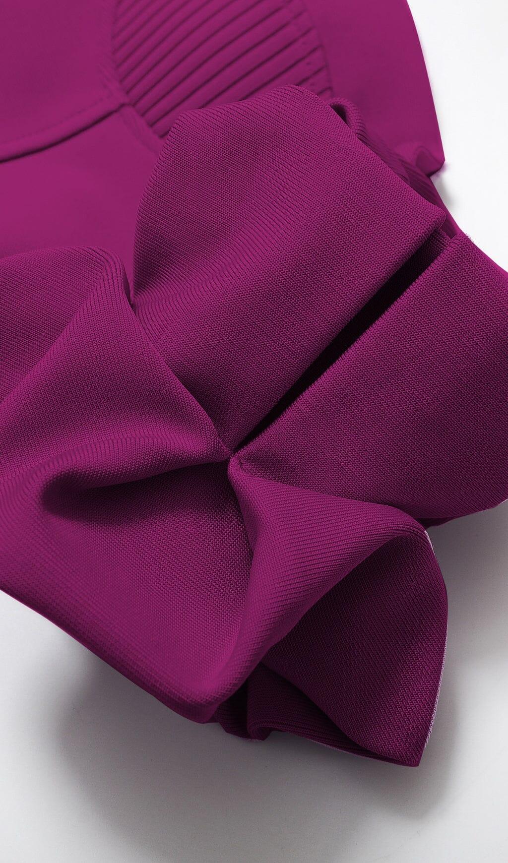 STRAPLESS DRAPED SLEEVE SLITS BANDAGE DRESS IN ROSE RED