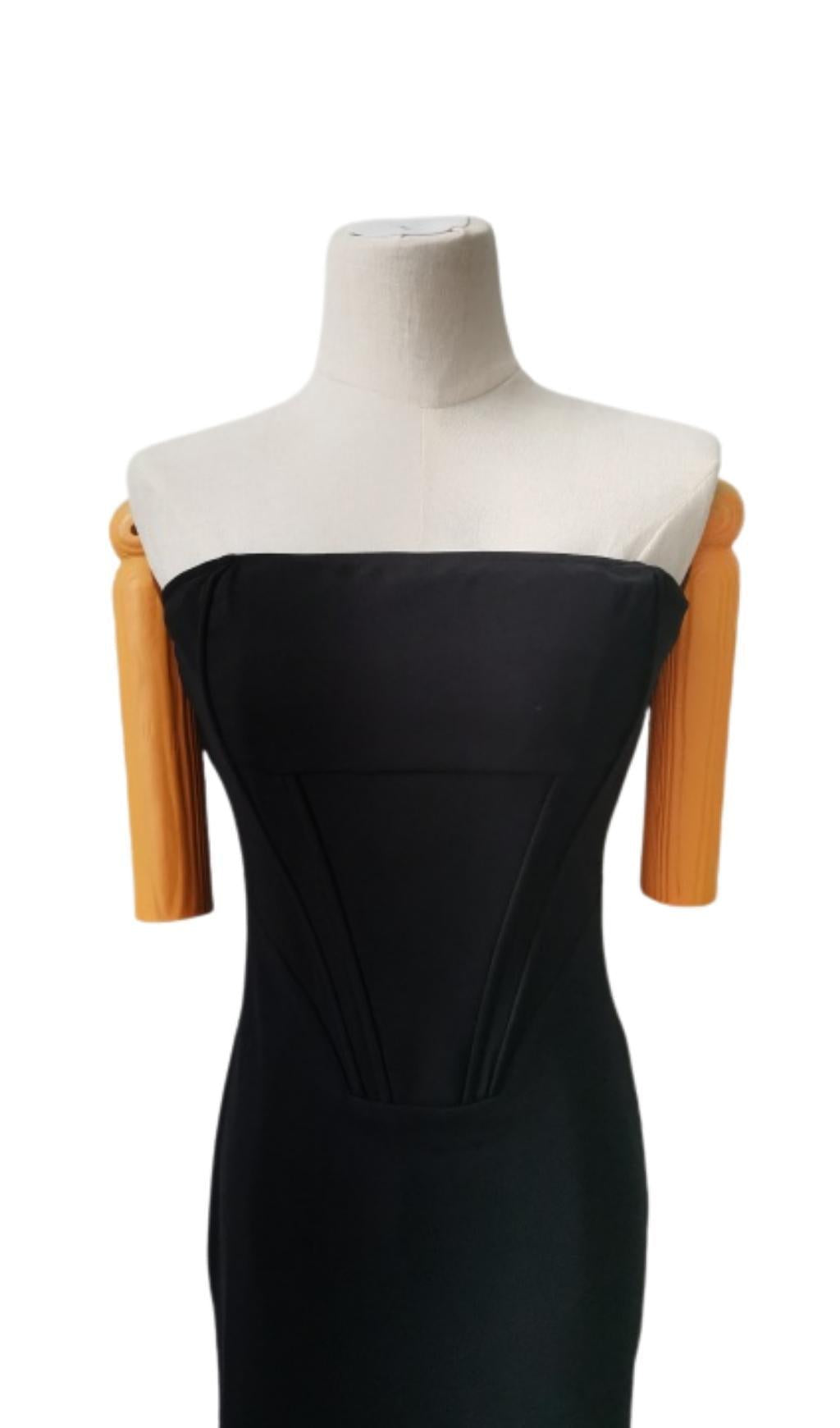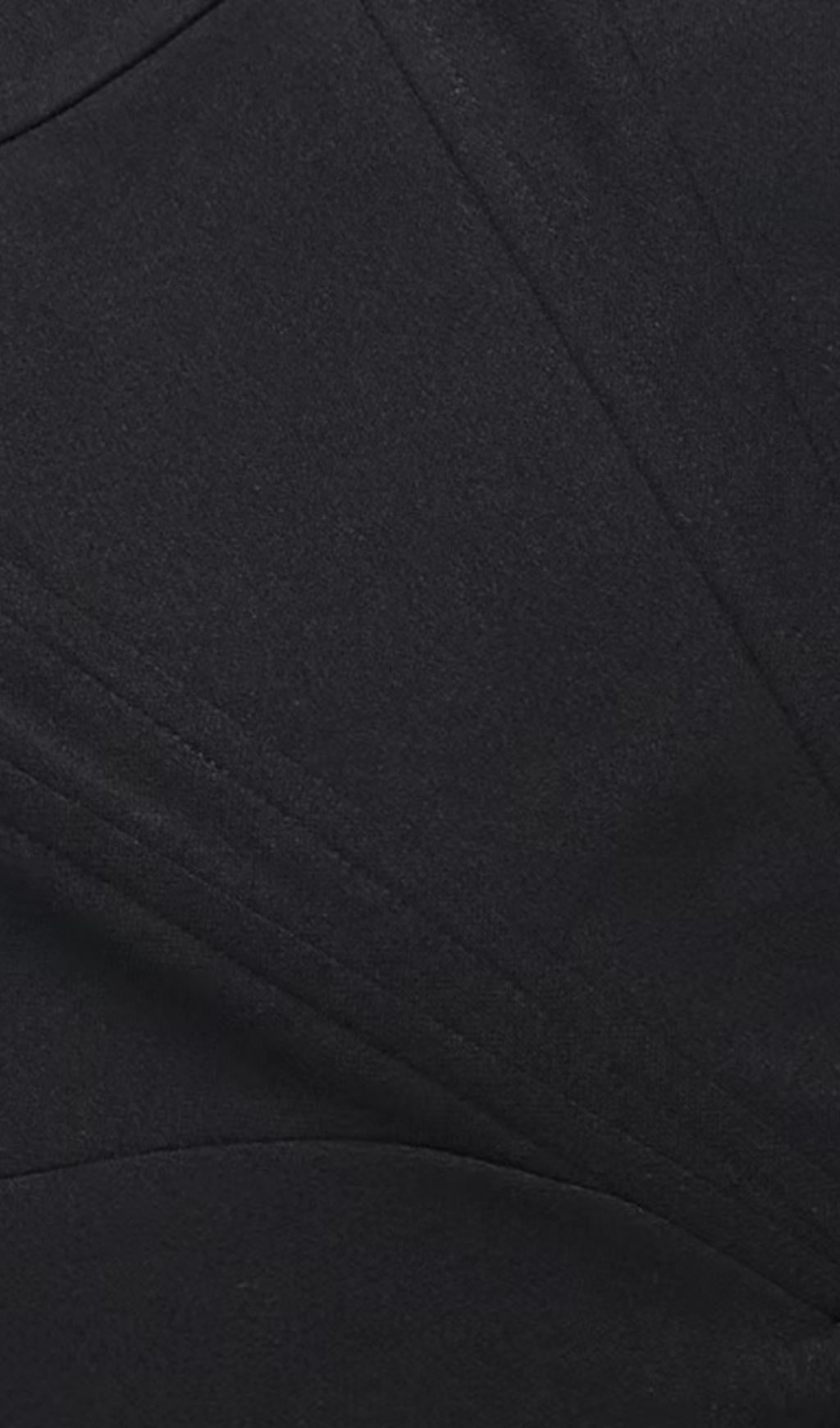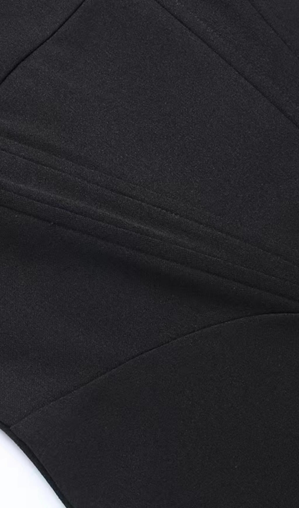 STRAPLESS FEATHER CORSET DRESS IN BLACK