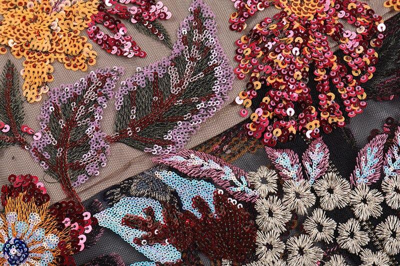 This strapless floral sequin dress is sure to make heads turn! Its maxi length makes it comfortable and chic, so your look is guaranteed to stay on fleek all night long!
