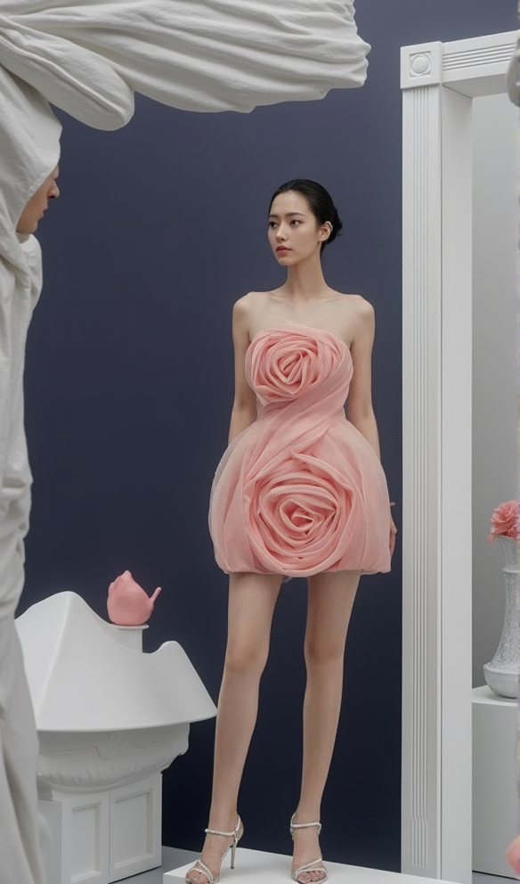 STRAPLESS 3D FLOWER MINI DRESS IN PINK