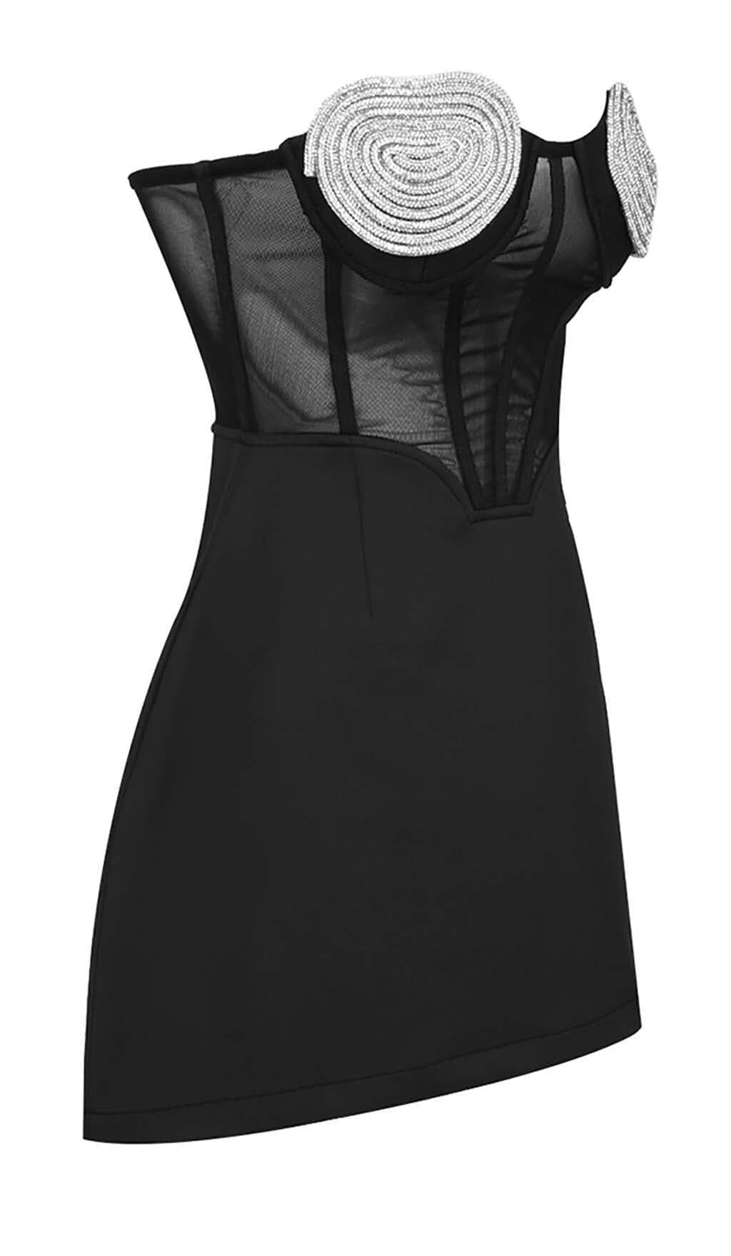 STRAPLESS HEART BUSTIER MINI DRESS IN BLACK