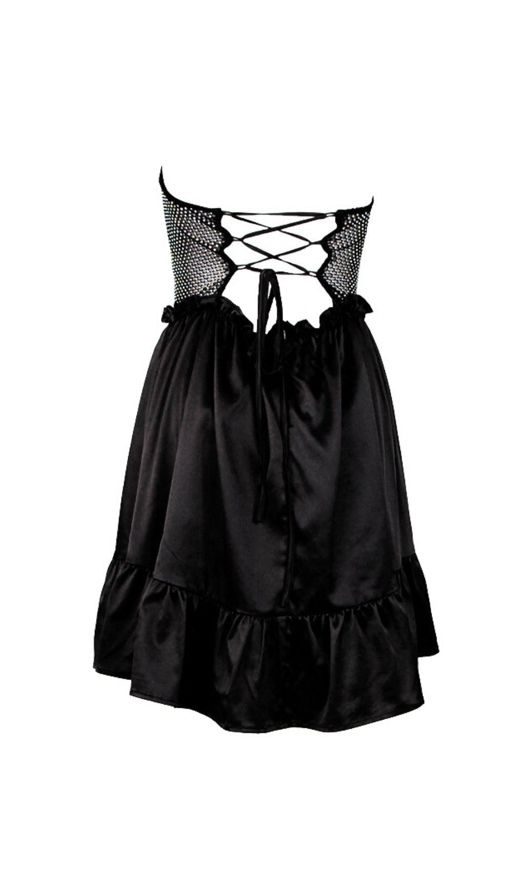 STRAPLESS LACE UP MINI DRESS IN BLACK