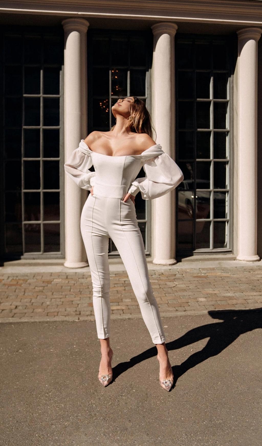 Elevate your style and embrace your inner allure with our Strapless Long Sleeves Jumpsuit in White. Order now and be the most captivating and confident woman in the room.