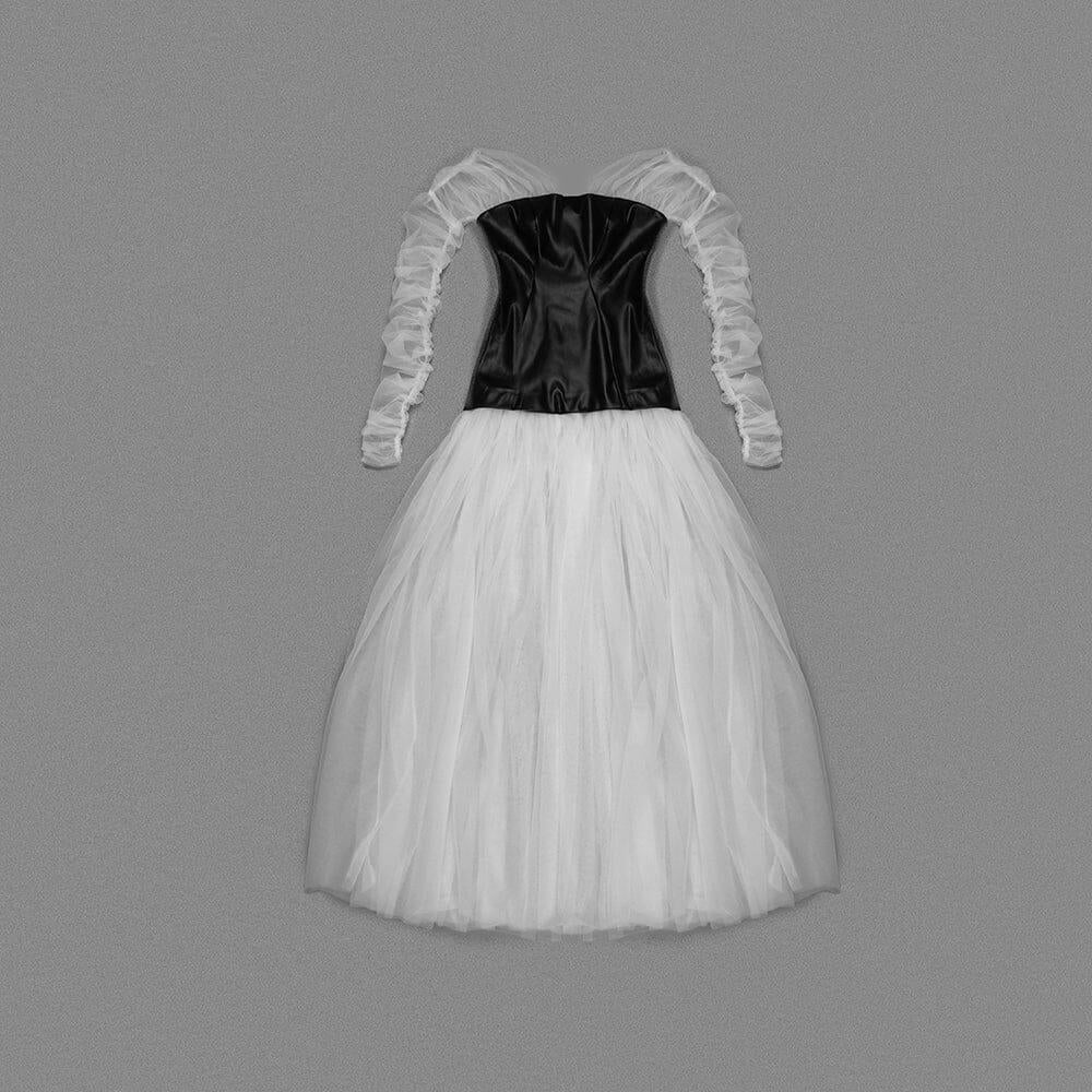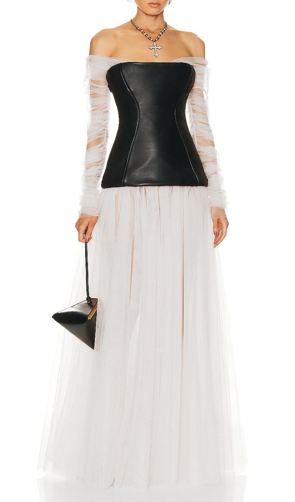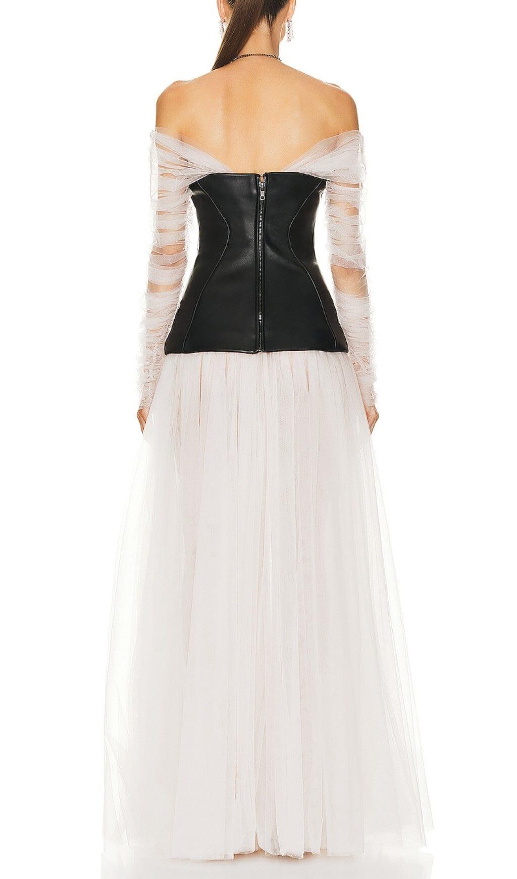 STRAPLESS MESH DOUBLE COLOR MATCHING MAXI DRESS