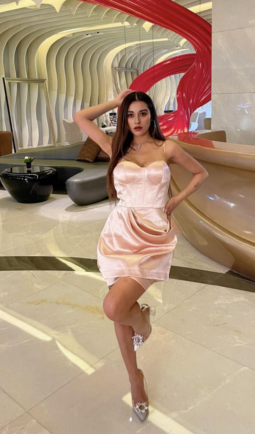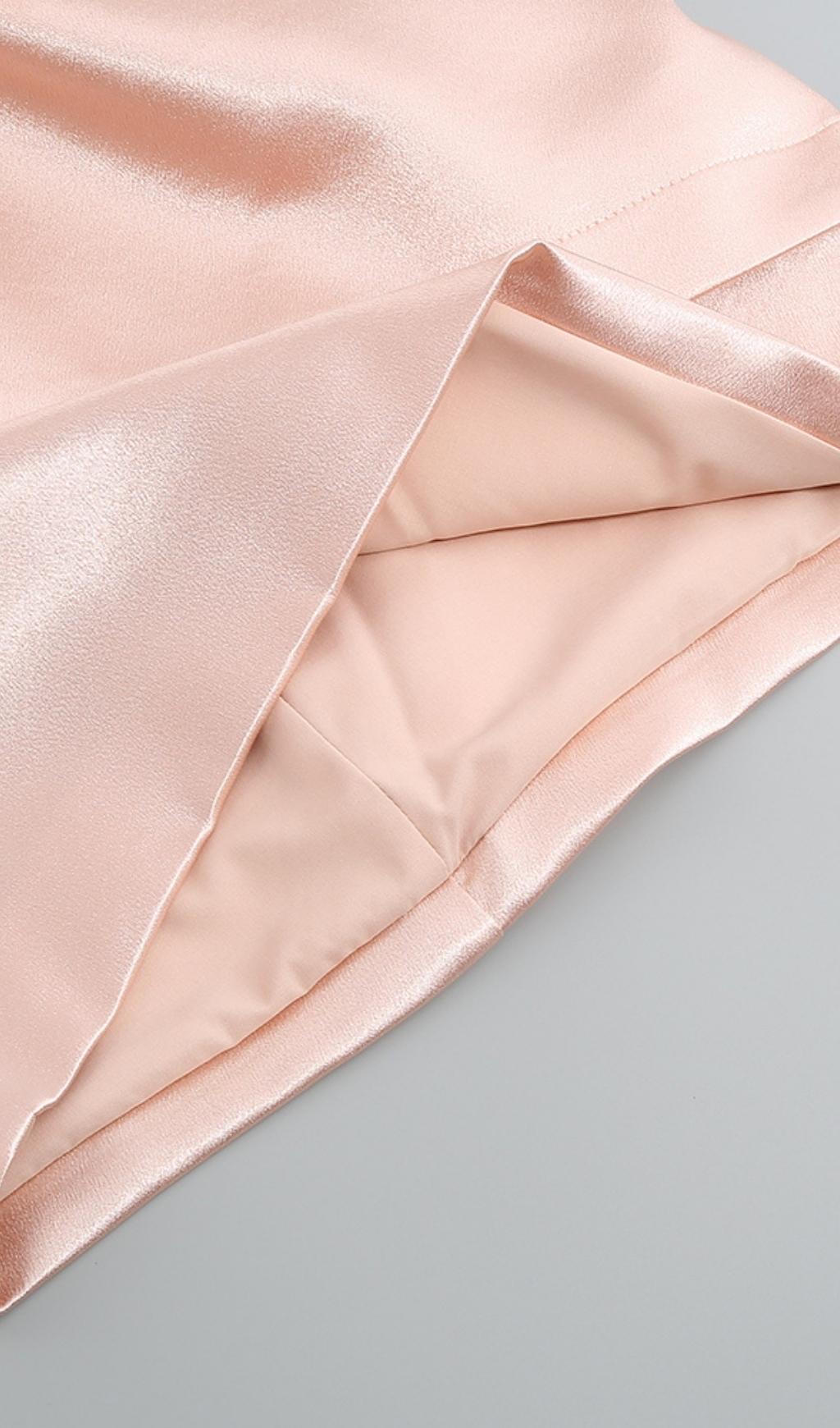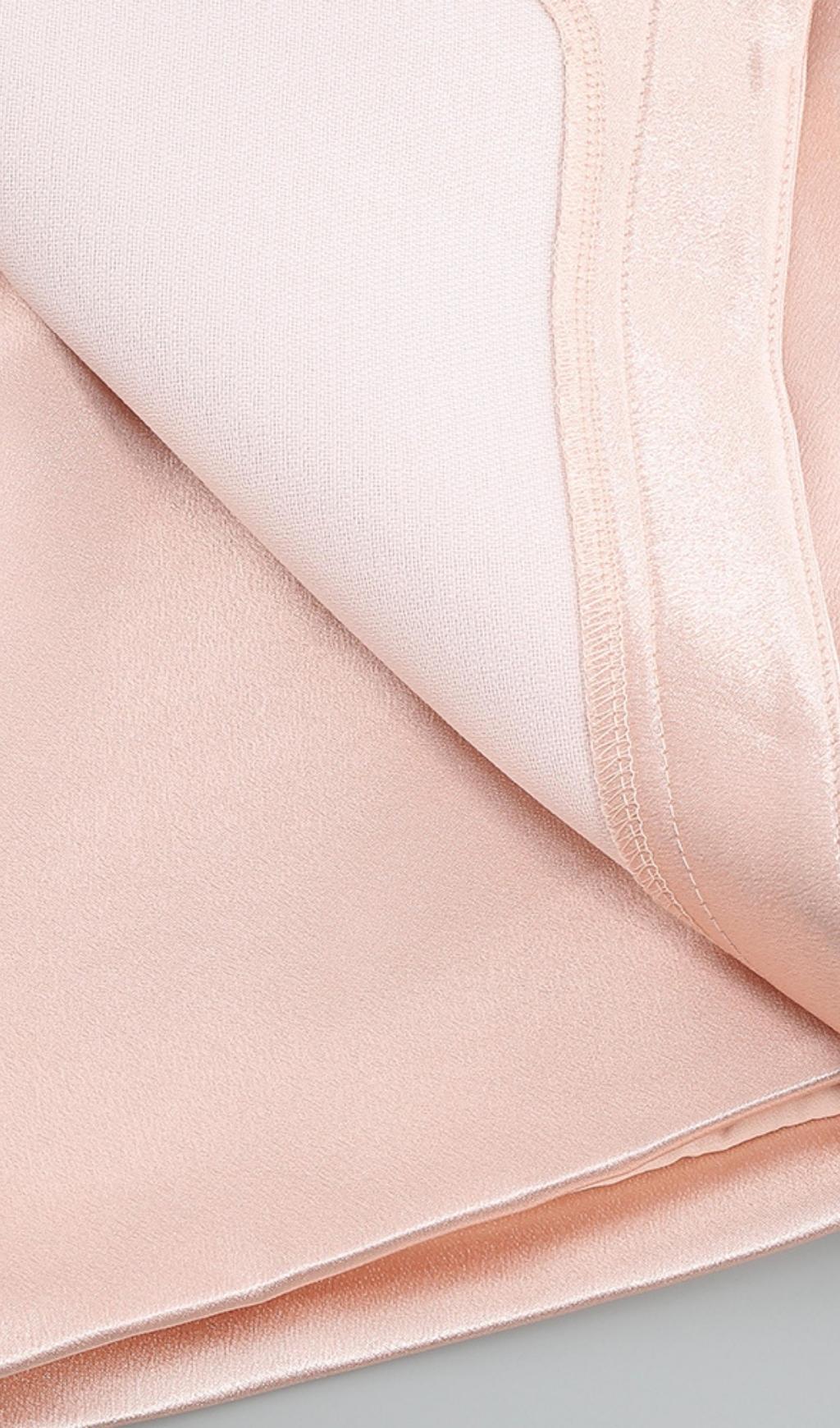 DRAPED STRAPLESS MINI DRESS IN PALE PINK