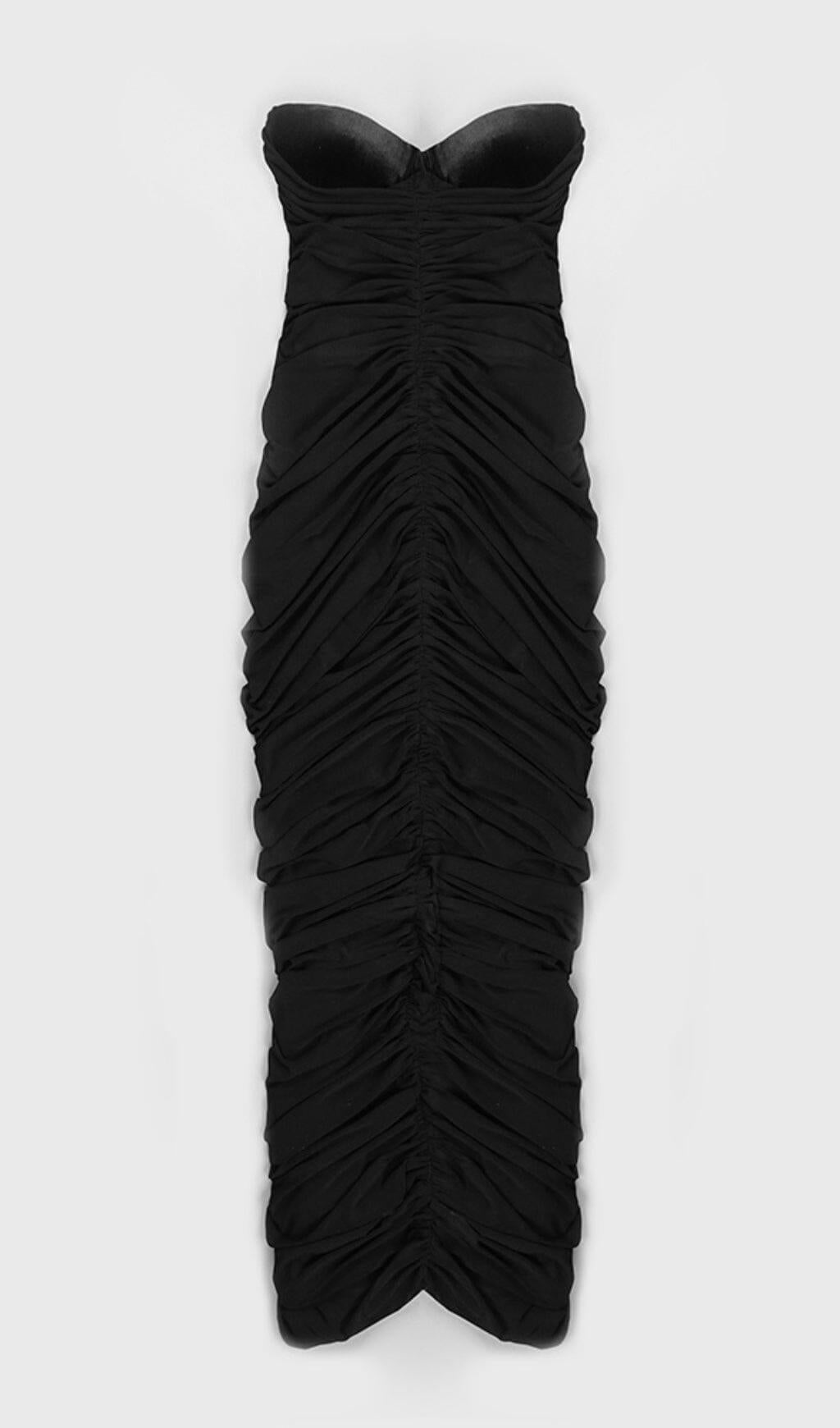 STRAPLESS PLEATED DRESS IN BLACK