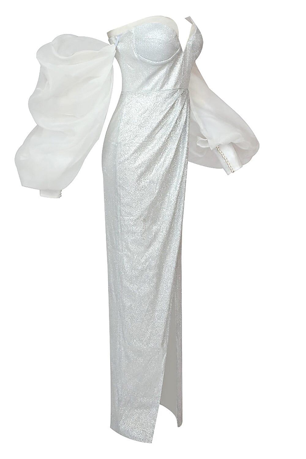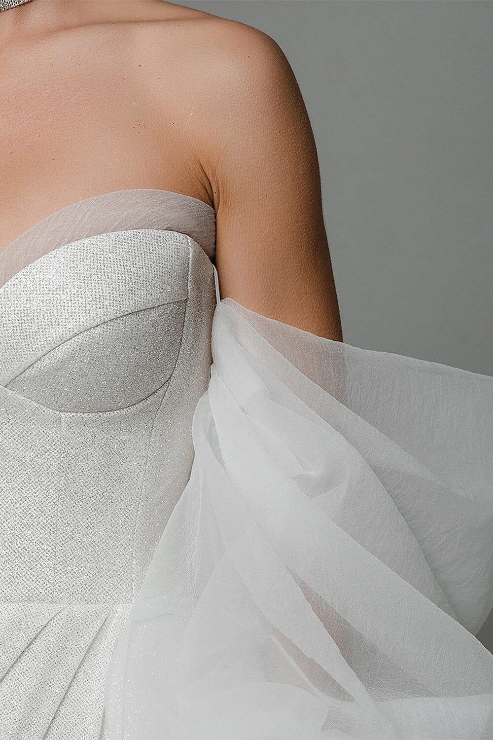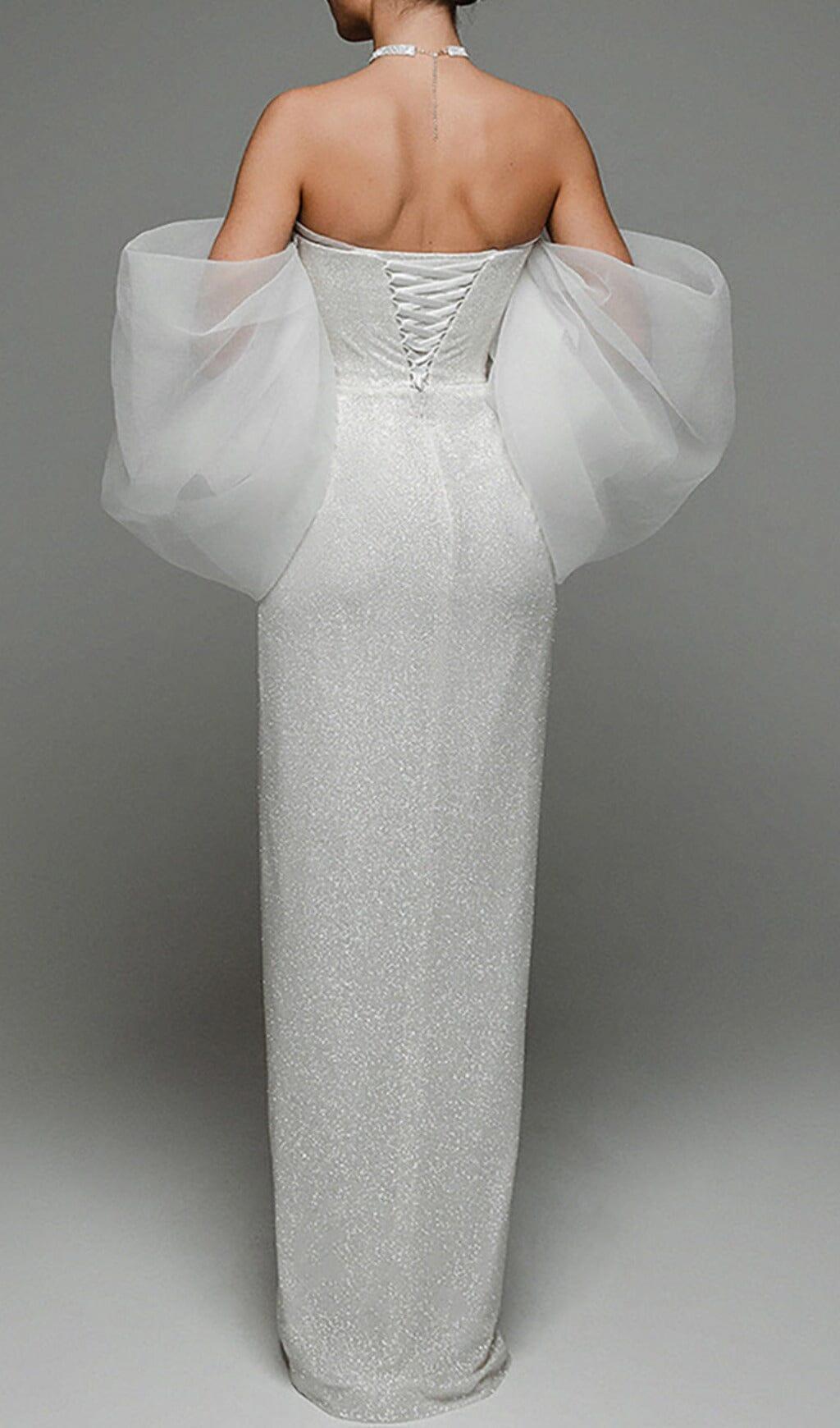 STRAPLESS PUFF SLEEVES SHINY GLITTER WEDDING DRESS