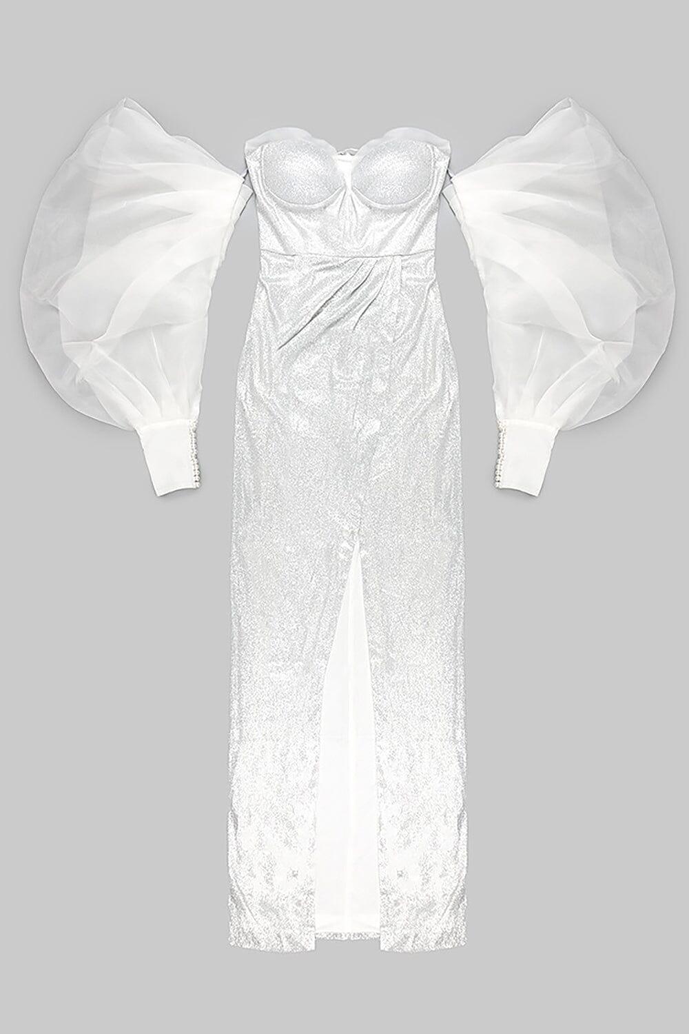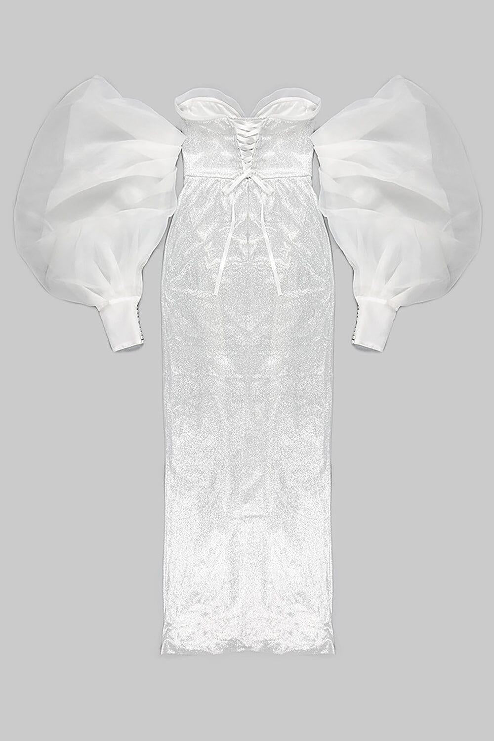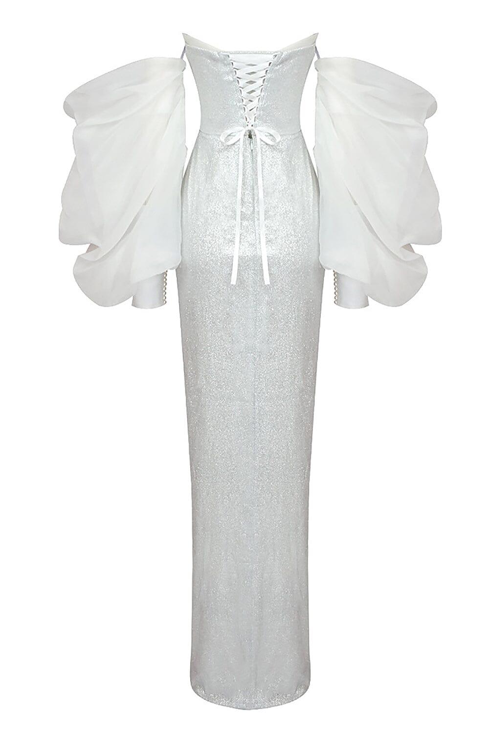 STRAPLESS PUFF SLEEVES SHINY GLITTER WEDDING DRESS