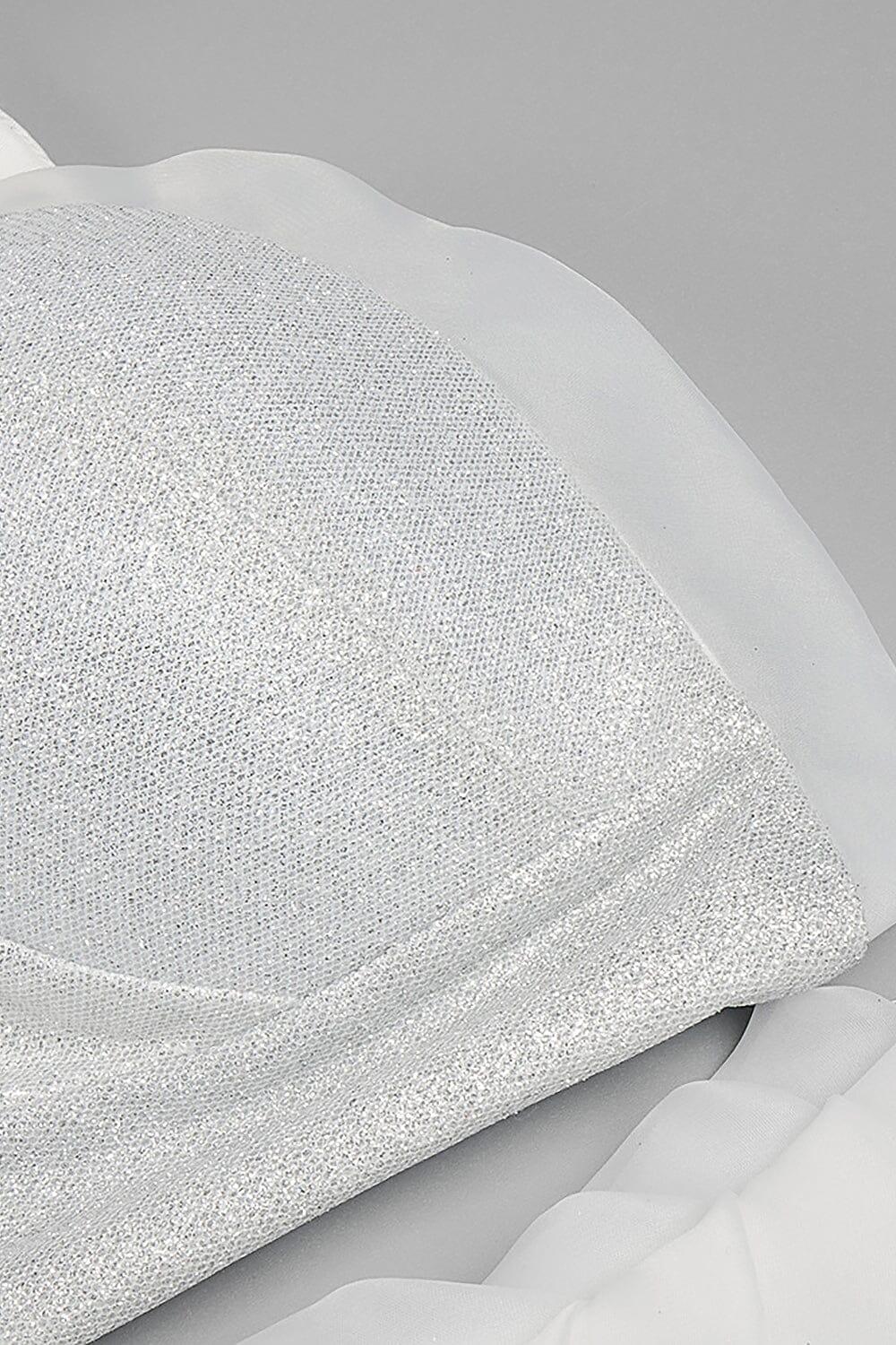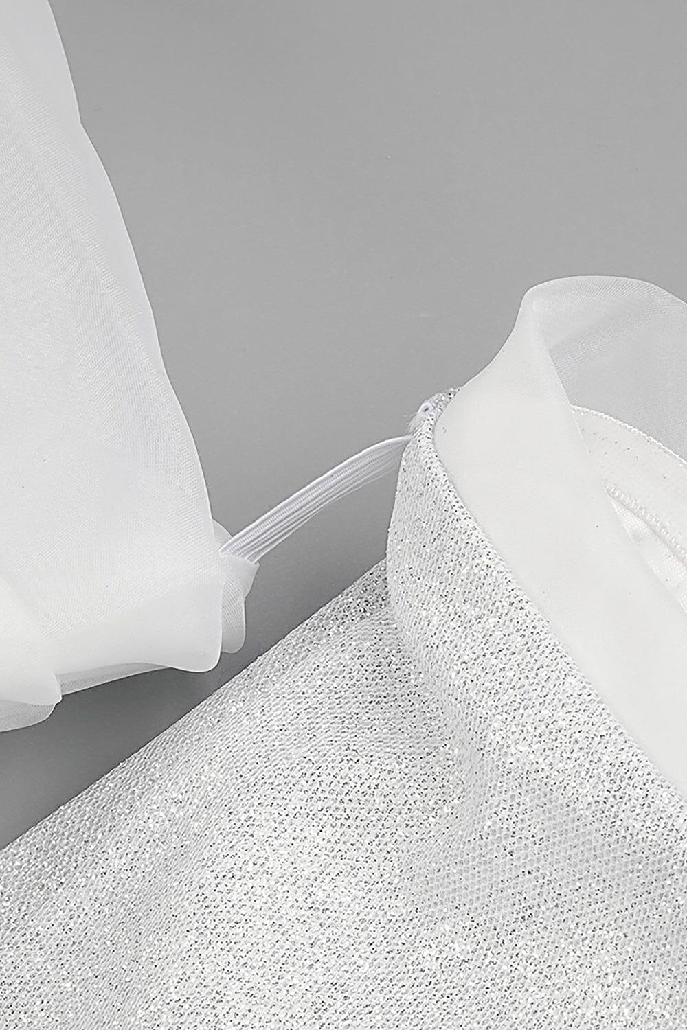 Elevate your style and make a statement with our Strapless Puff Sleeves Shiny Glitter Wedding Dress. Perfect for weddings, cocktail parties, and any glamorous event, this dress combines elegance, comfort, and convenience. With its strapless design, shiny glitter fabric, and cupped and lined fit, our dress ensures you'll look and feel stunning all night long. Choose our dress for