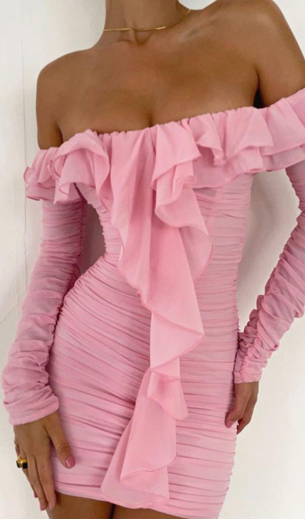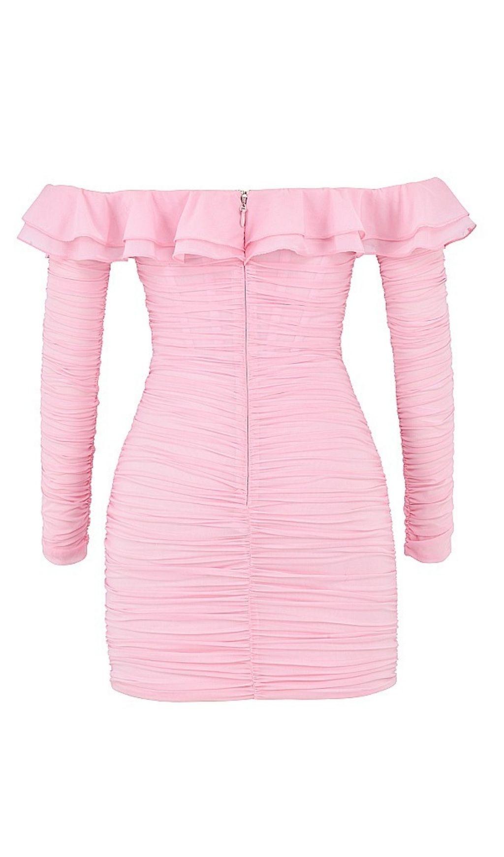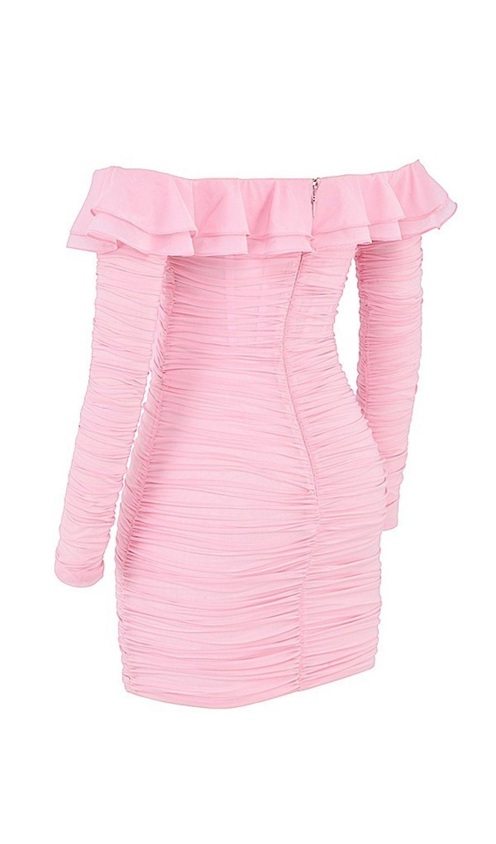 STRAPLESS RUCHED MINI DRESS IN PINK