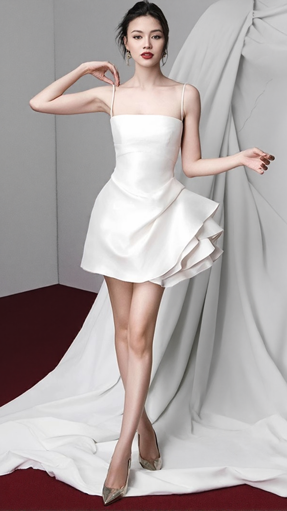 This white strapless ruffle mini dress is designed to enhance your neckline and highlight your figure with its waist-hugging design. The suspender design adds a touch of elegance to this chic and trendy piece. Perfect for a night out or a special occasion, this dress will make you stand out in style.