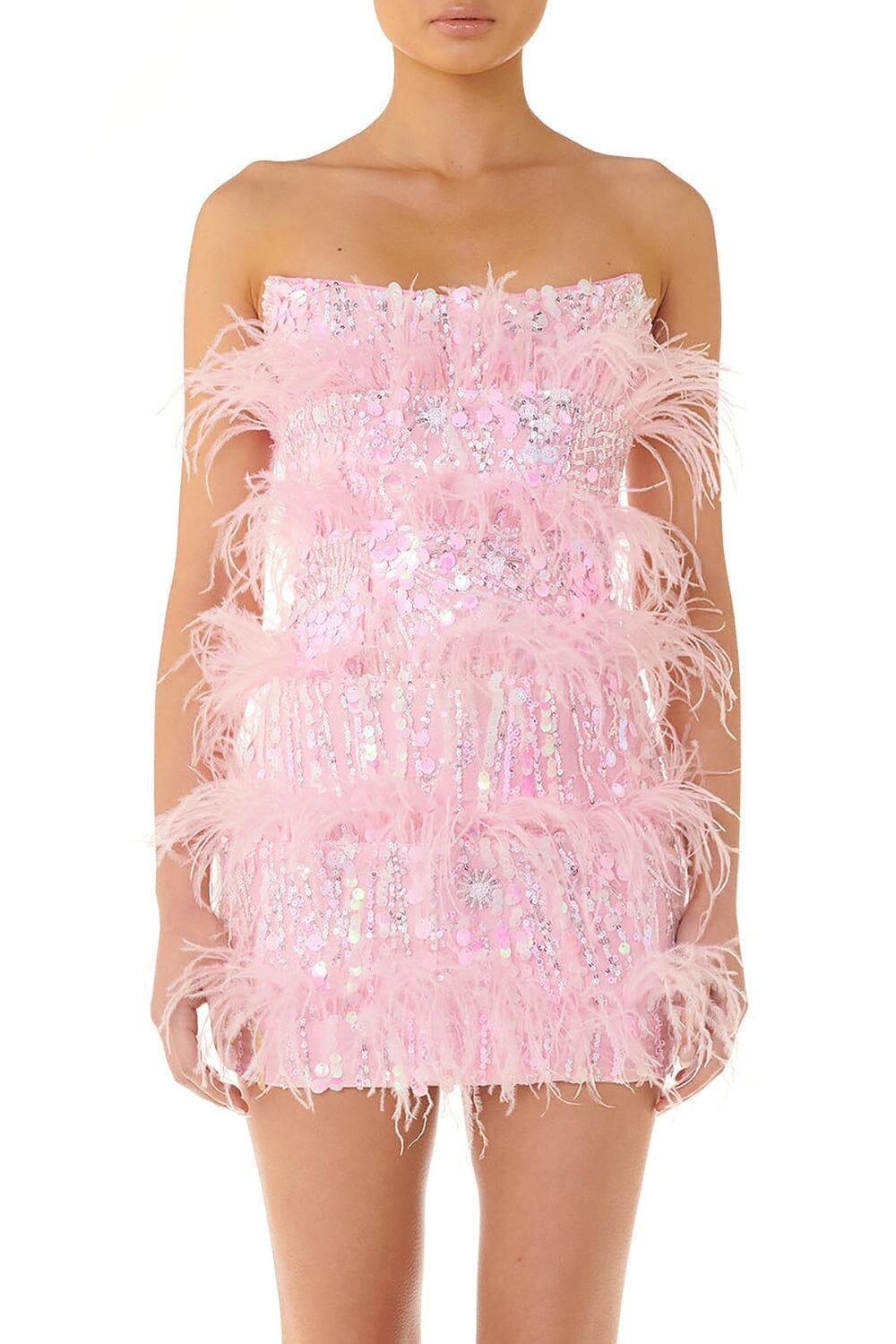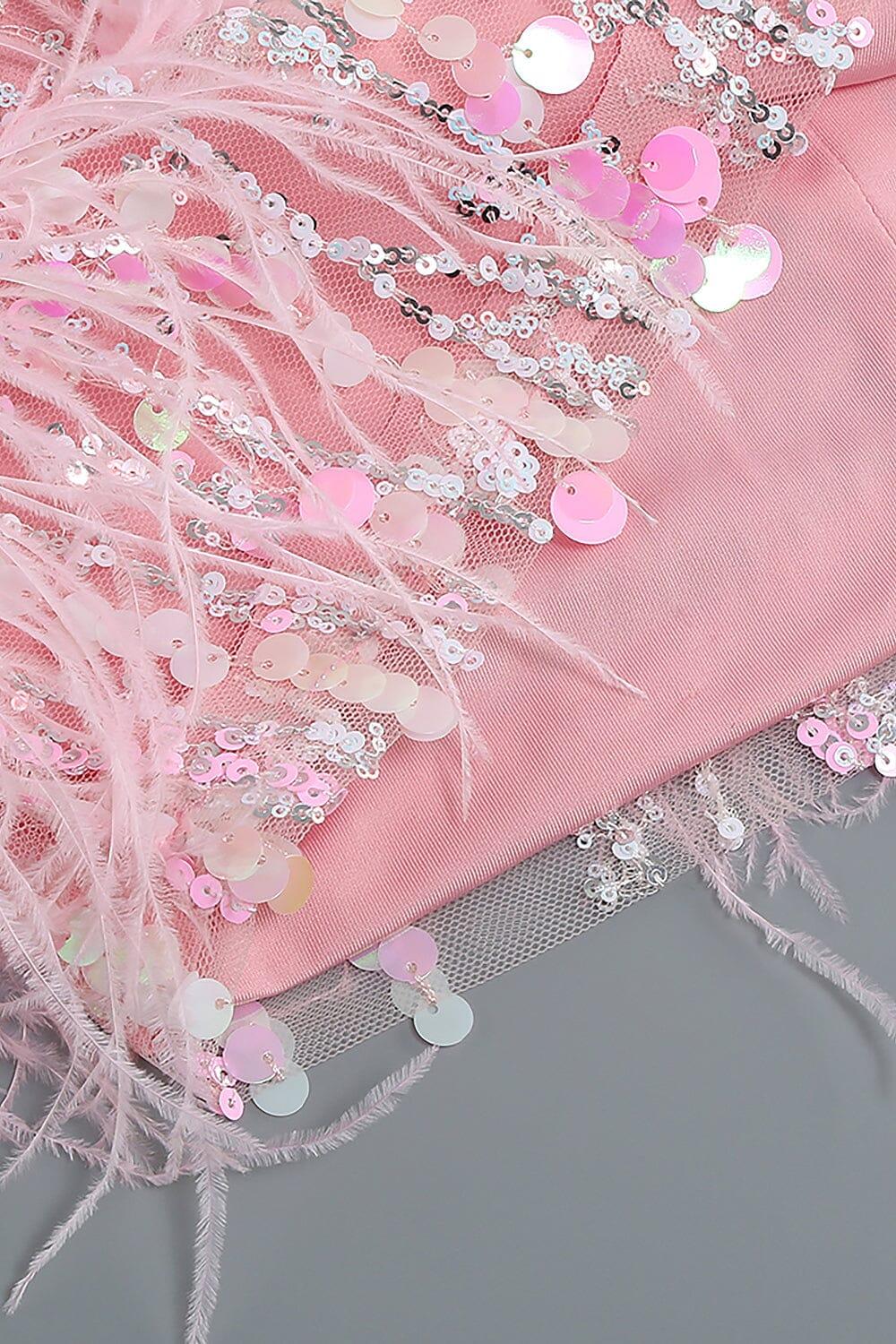 STRAPLESS SEQUINS SHINY GLITTER DRESS IN PINK