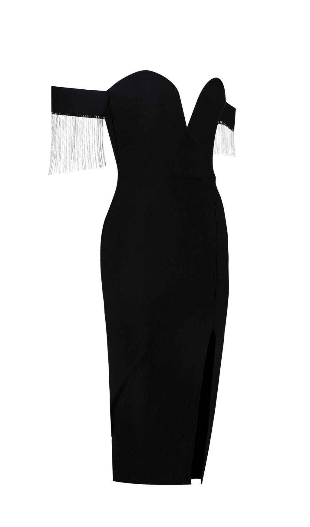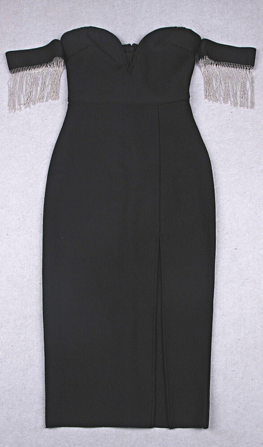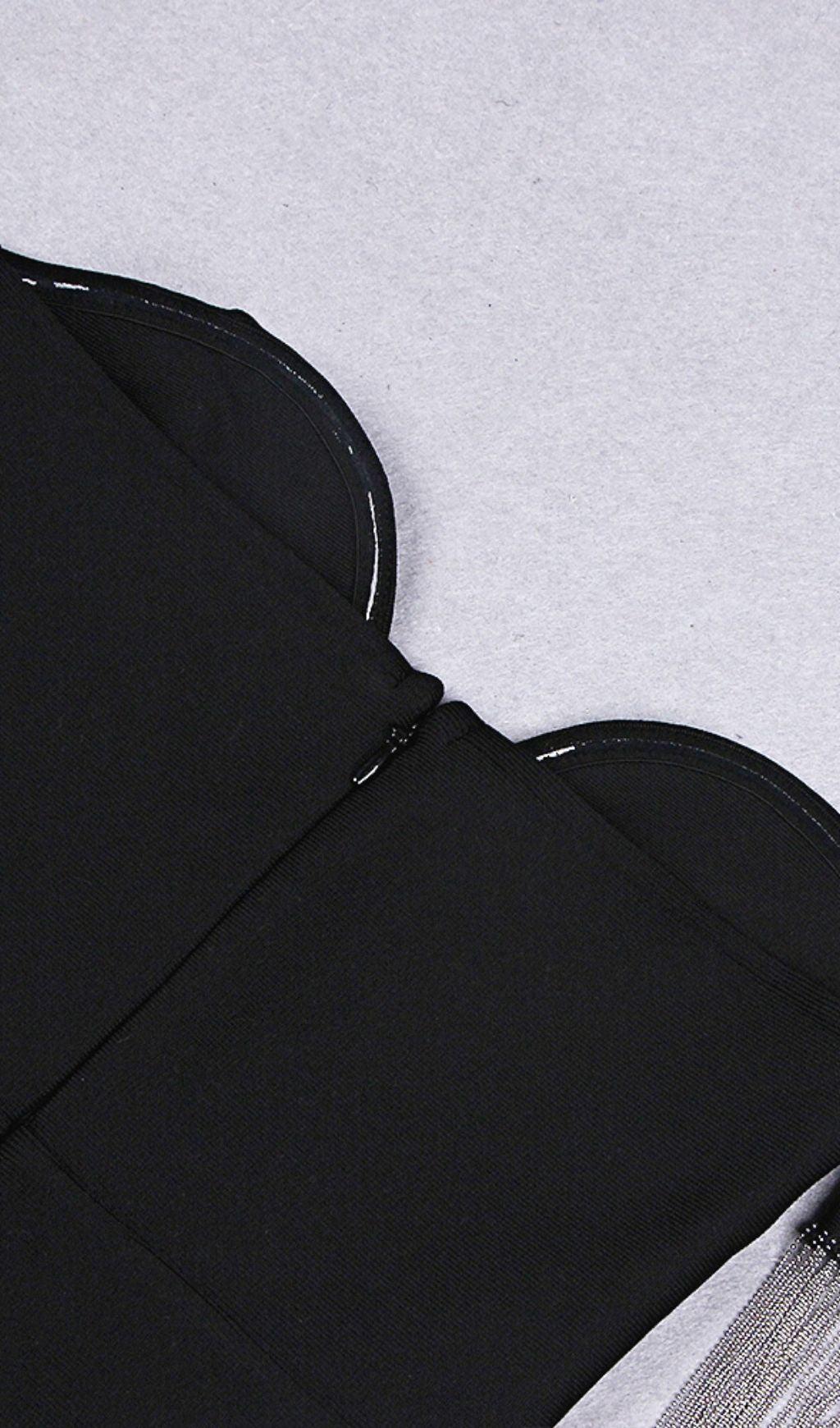 STRAPLESS SLIT BANDAGE DRESS IN BLACK