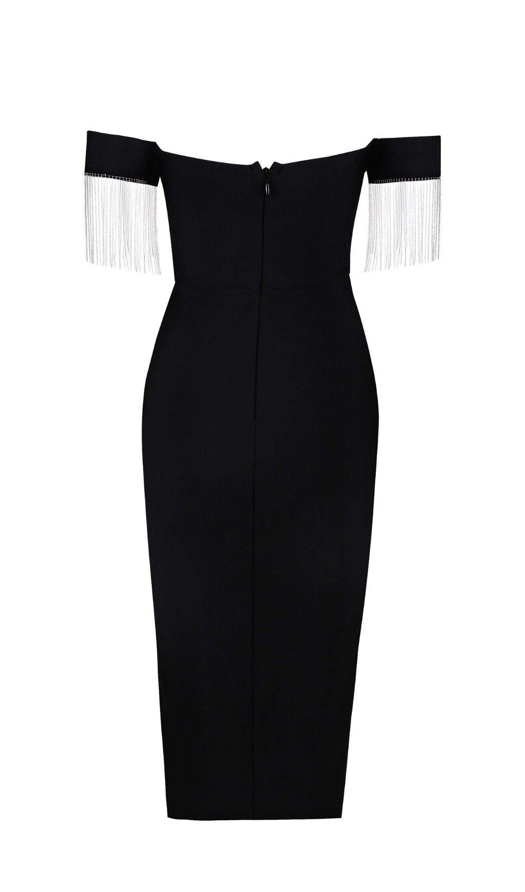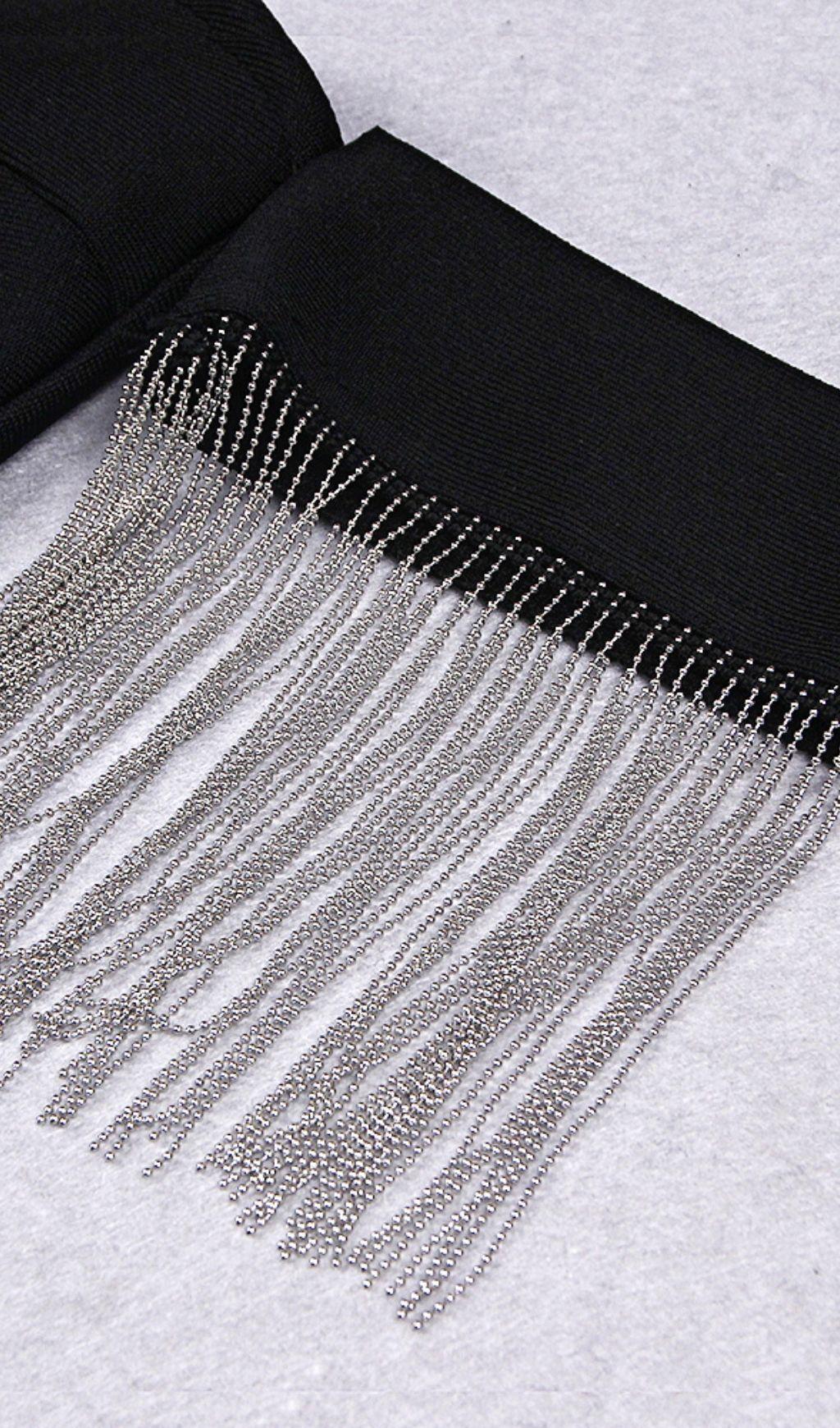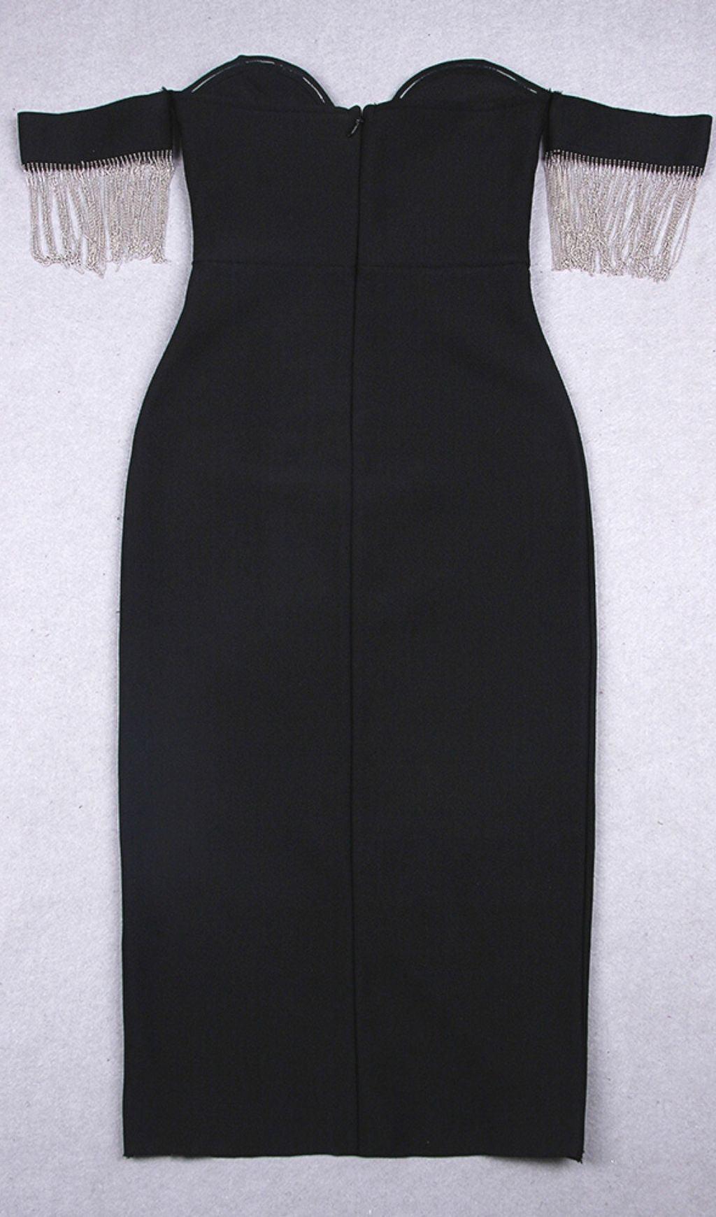 STRAPLESS SLIT BANDAGE DRESS IN BLACK