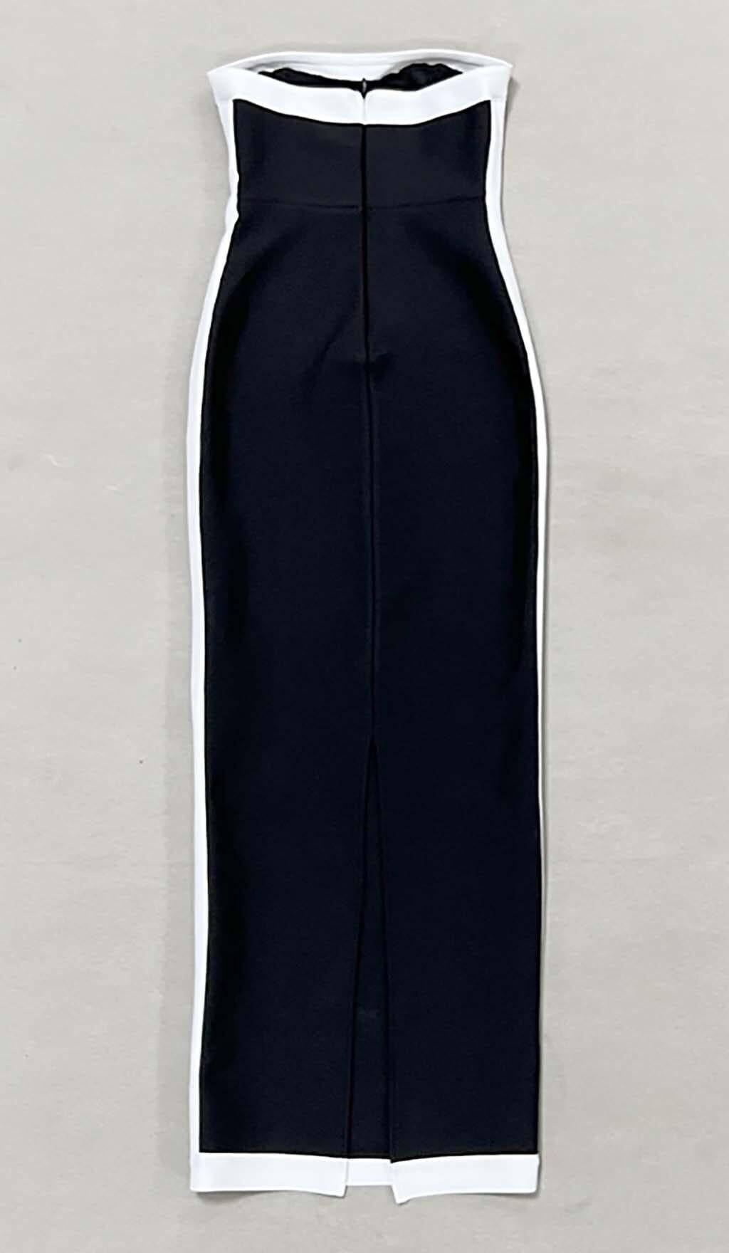 STRAPLESS SLIT MAXI BANDAGE DRESS