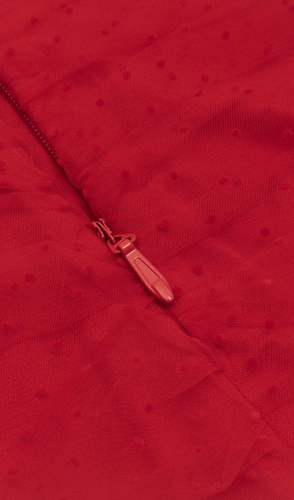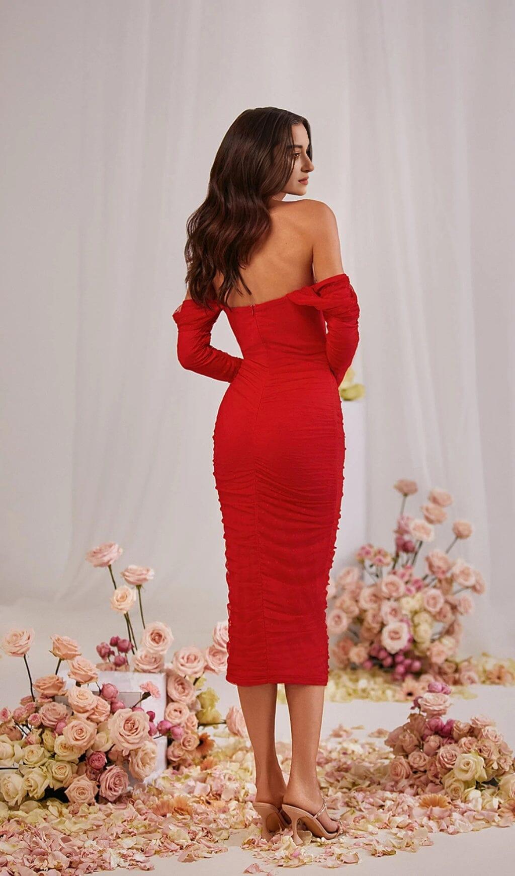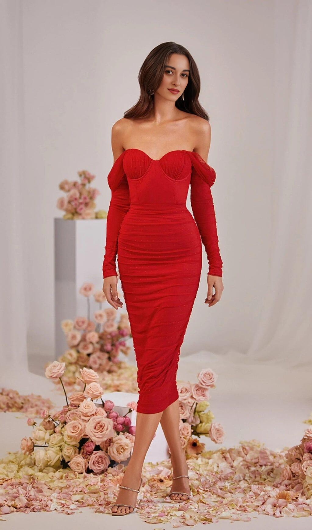Enhance Your Style with Our Stunning Strapless Lace Midi Dress in Red
