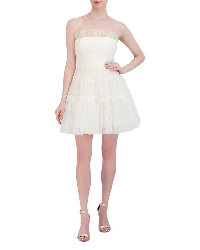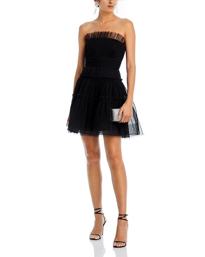 STRAPLESS TIERED TULLE MINI DRESS