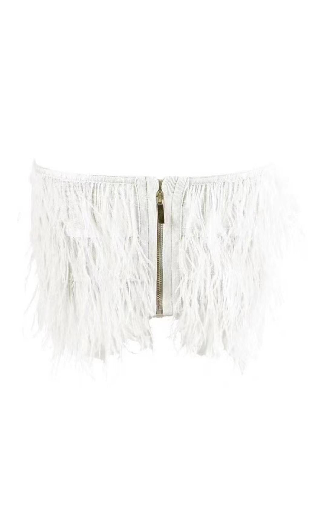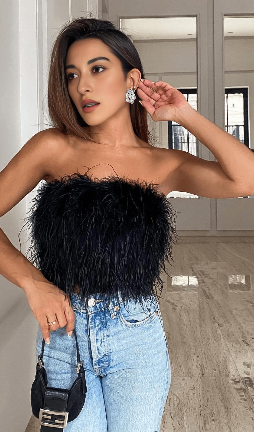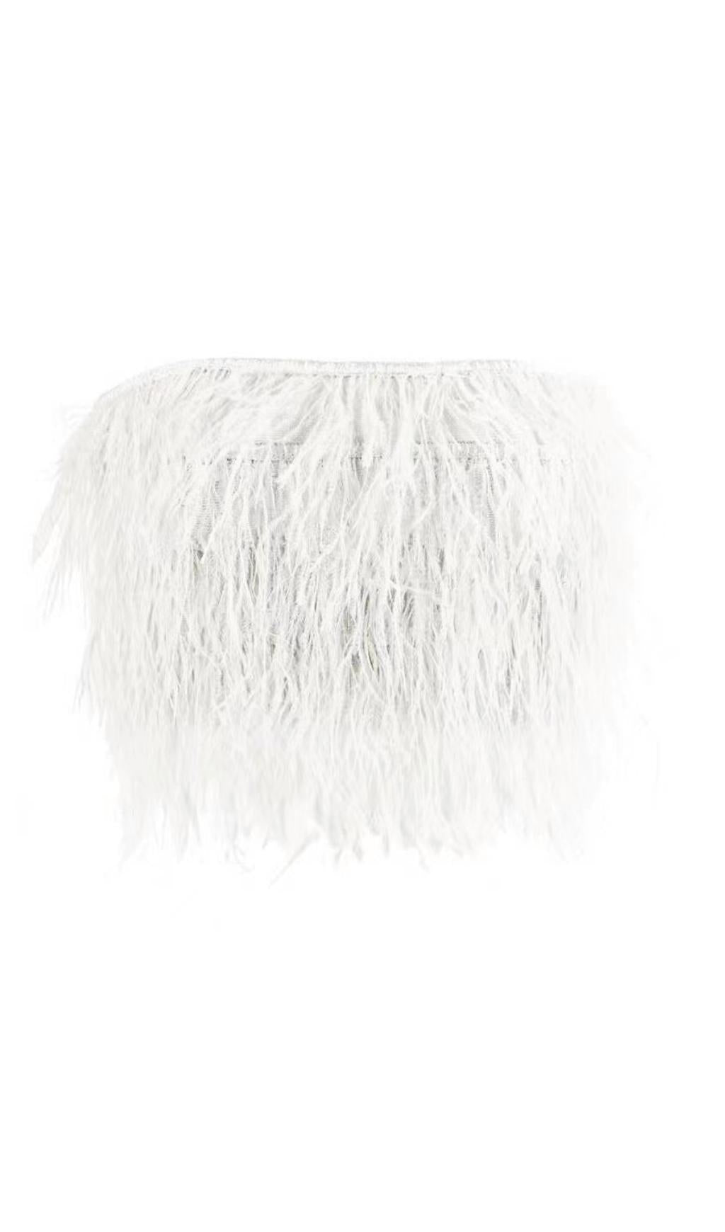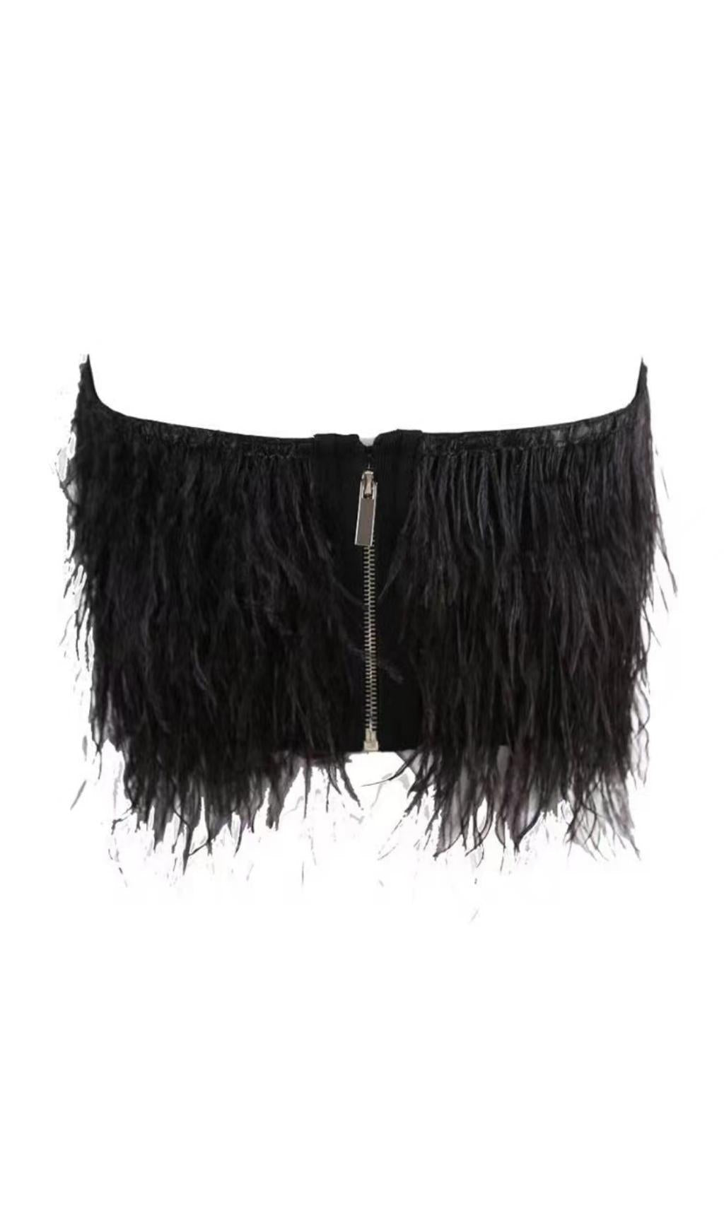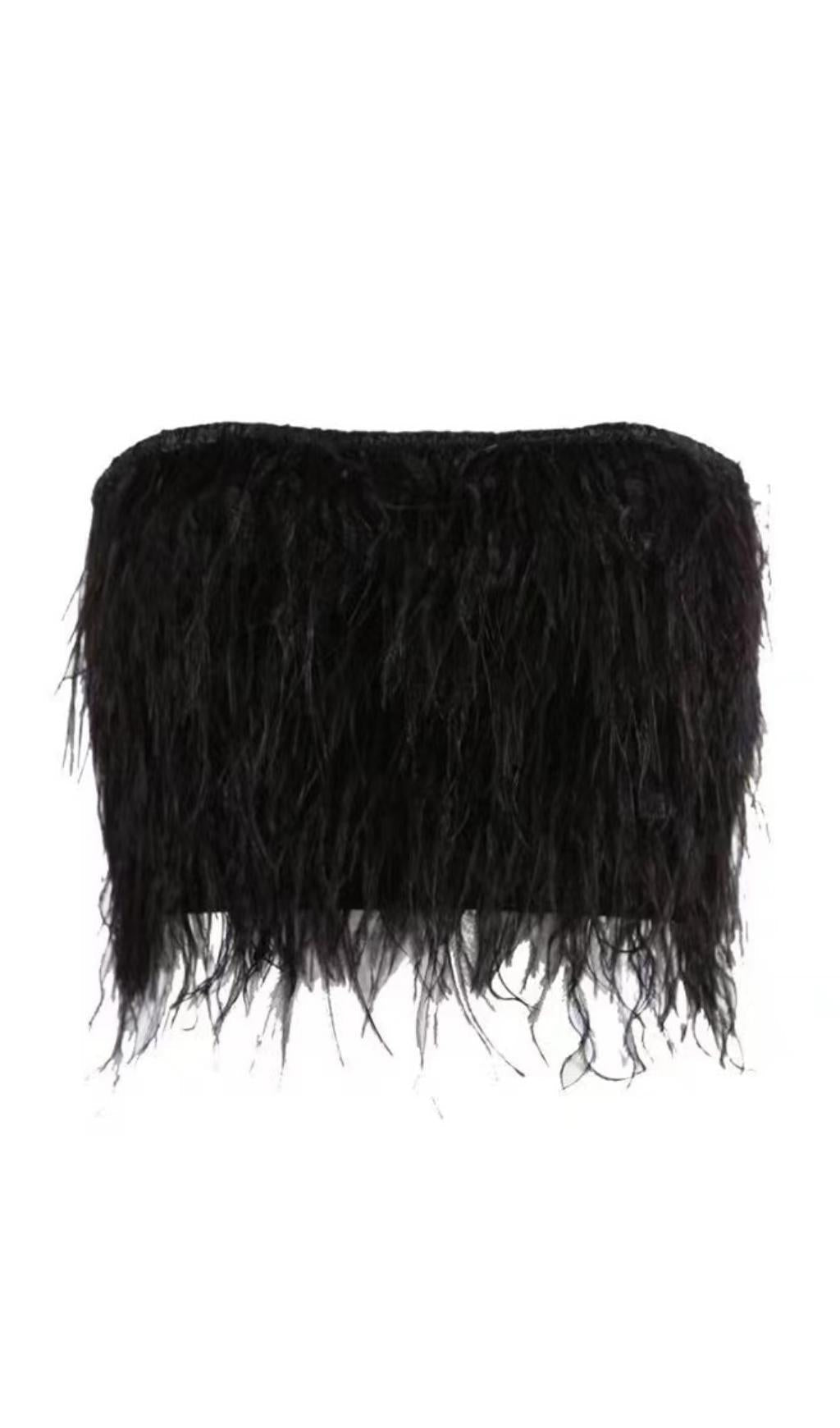 Introducing our stunning Strapless Feather Top, a must-have for any fashion-forward woman. This exquisite top combines elegance and glamour, making it perfect for a variety of occasions. Whether you're attending a romantic dinner date, enjoying champagne with the girls, hitting the cocktail bars, or dancing the night away at a party, this top will ensure you stand out from the crowd.