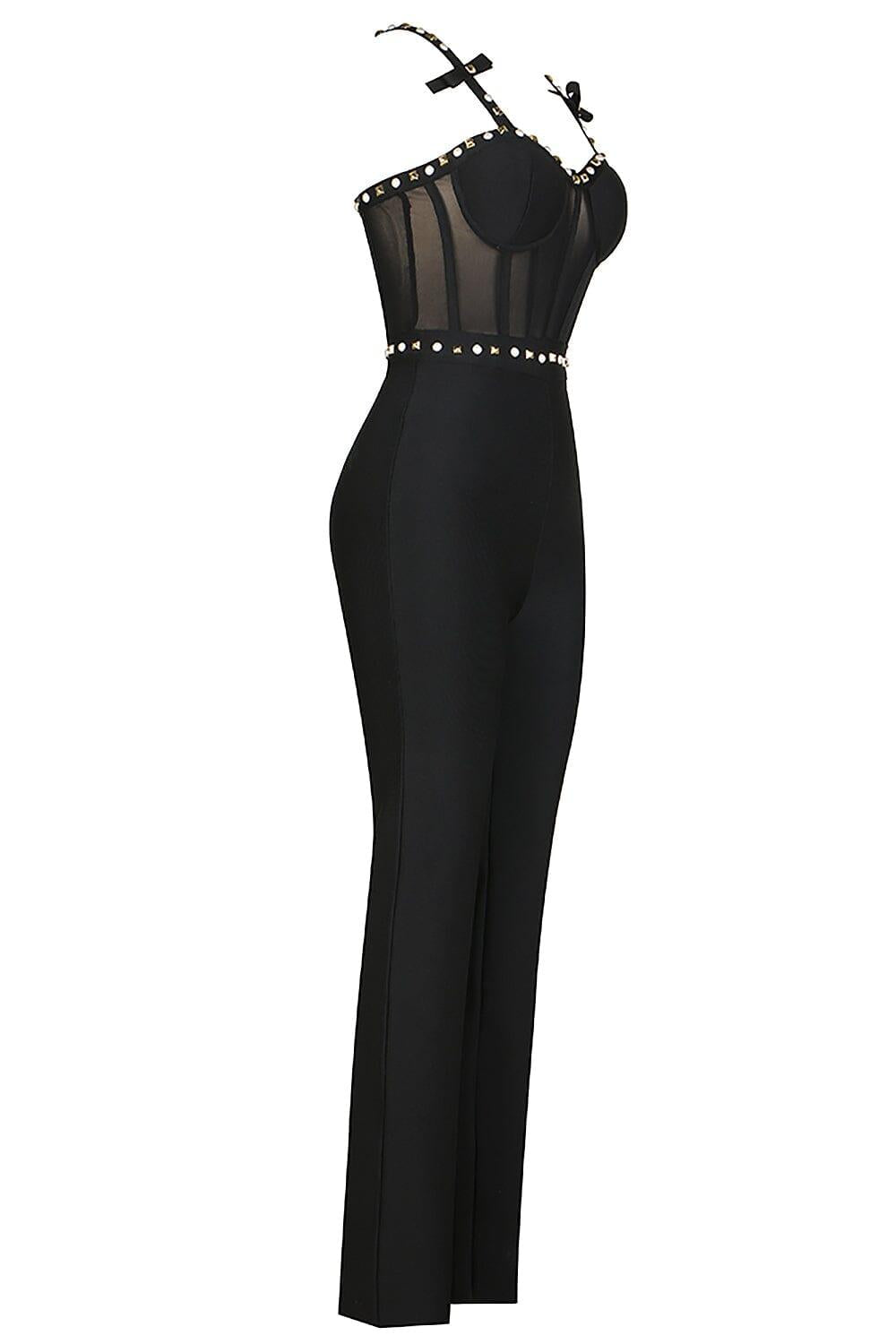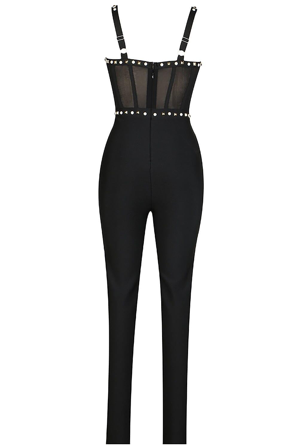 STRAPPY BEADED BANDAGE MESH JUMPSUIT