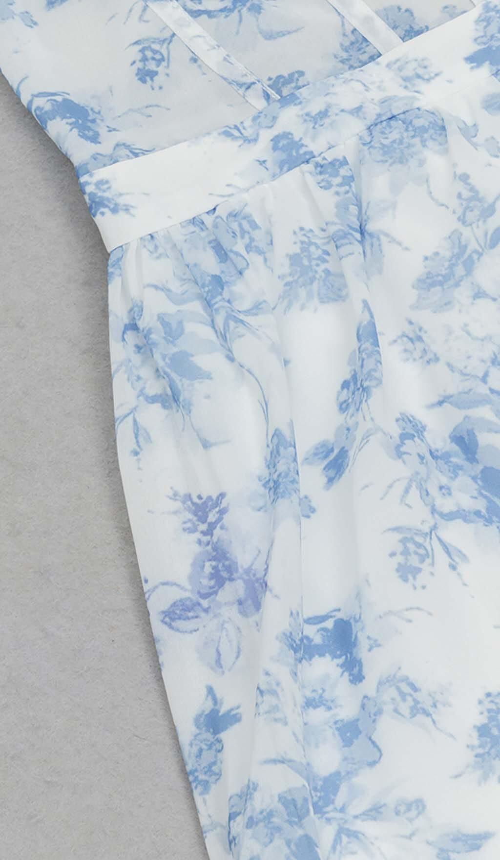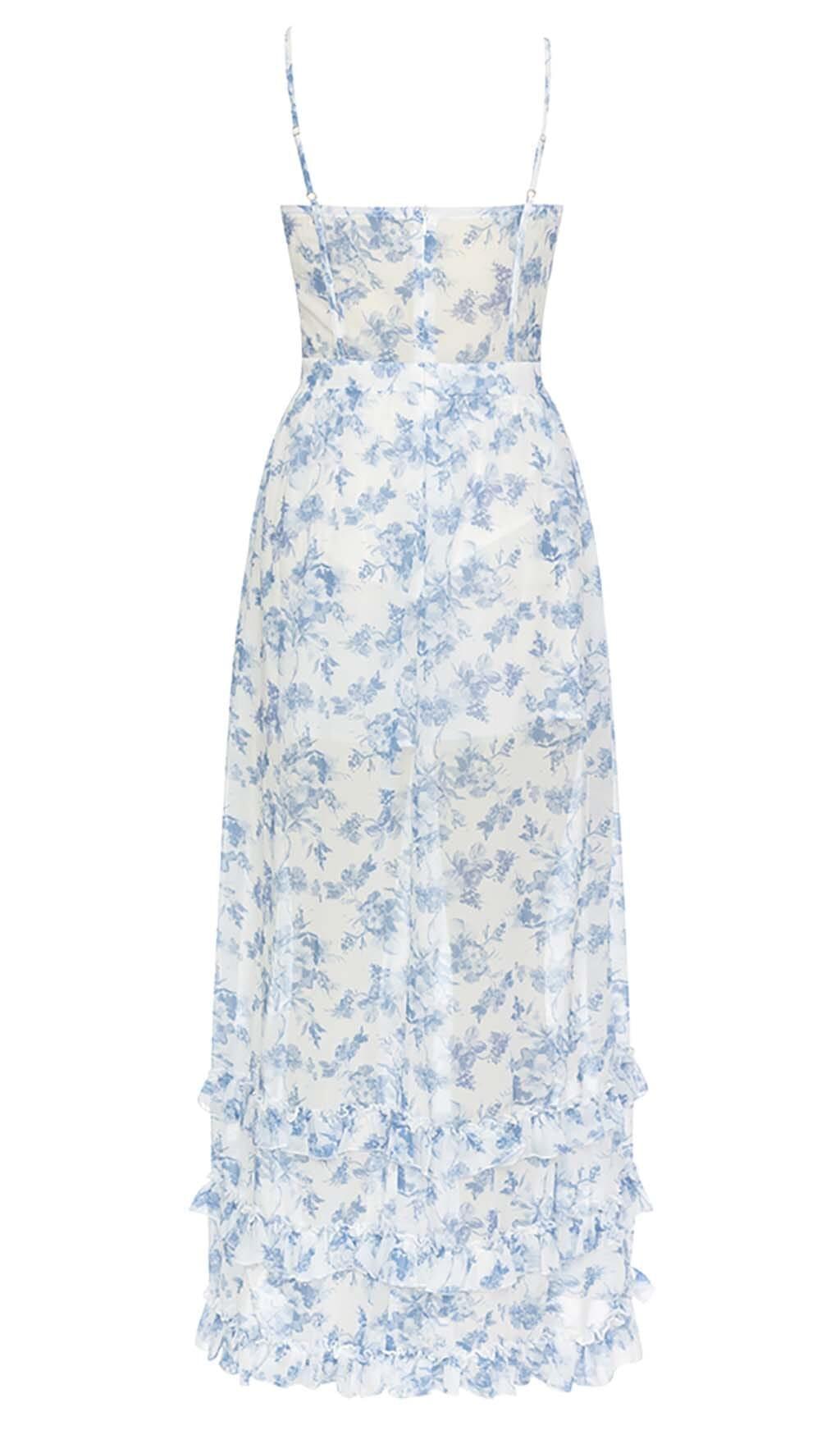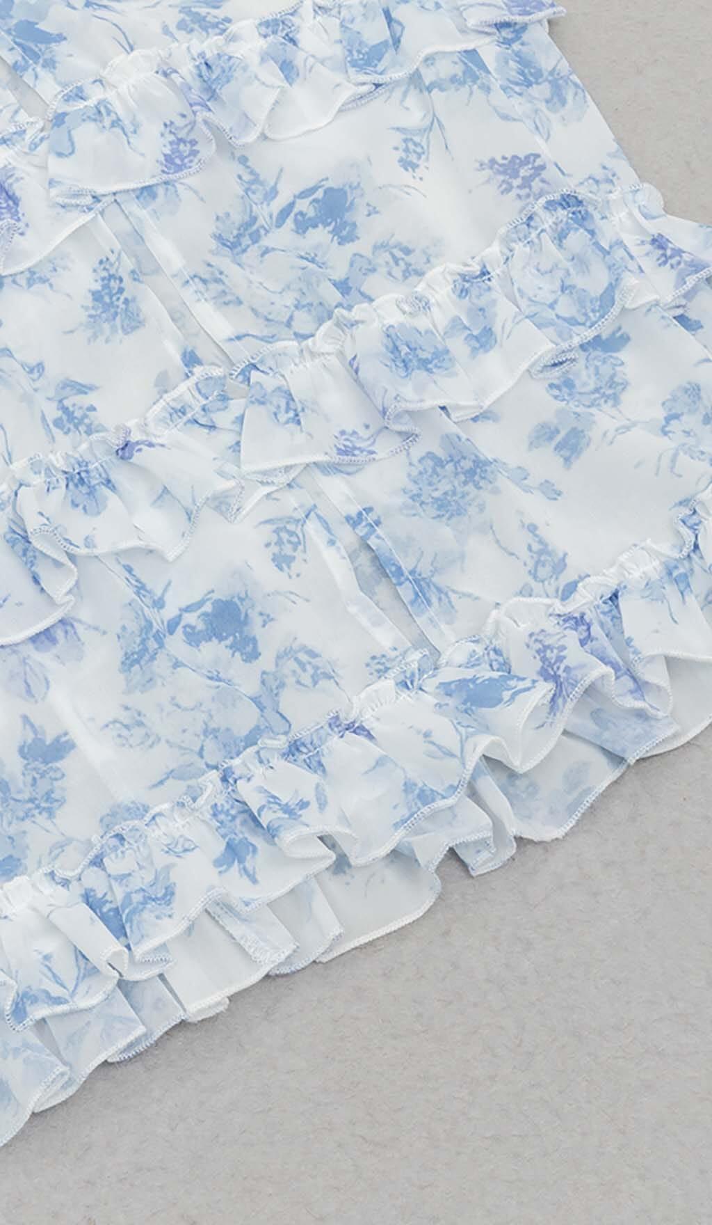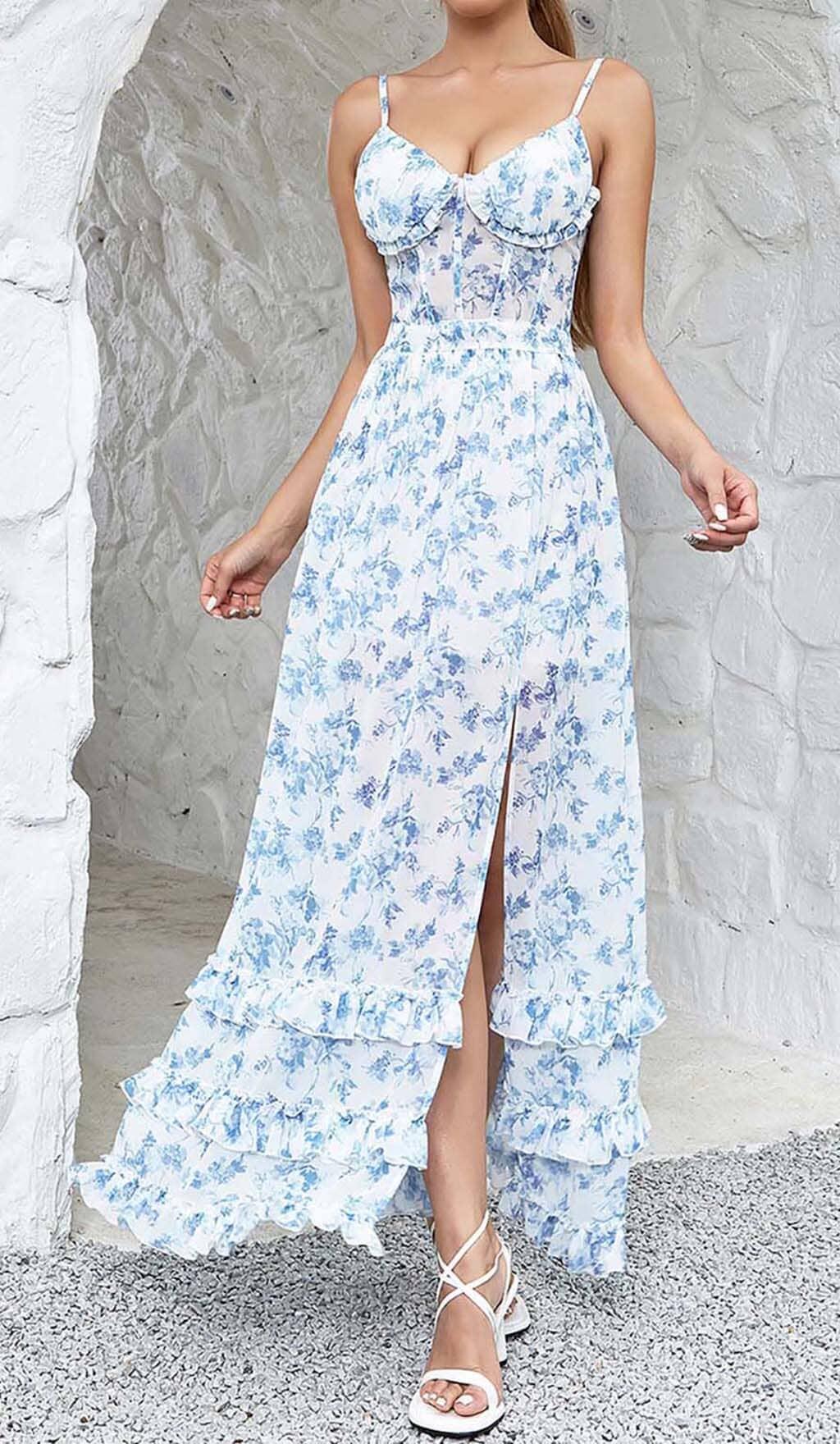 STRAPPY CORSET TIERED MAXI DRESS IN BLUE