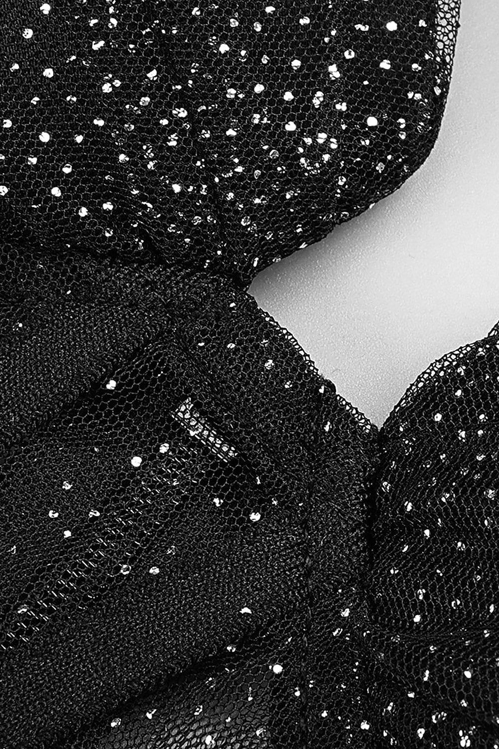 Don't miss out on the opportunity to own this breathtaking dress. Add it to your wardrobe and be prepared to receive compliments wherever you go. Order yours today and experience the luxury and beauty of our Strappy Draped Rhinestone Tulle Corset Maxi Dress in Black.