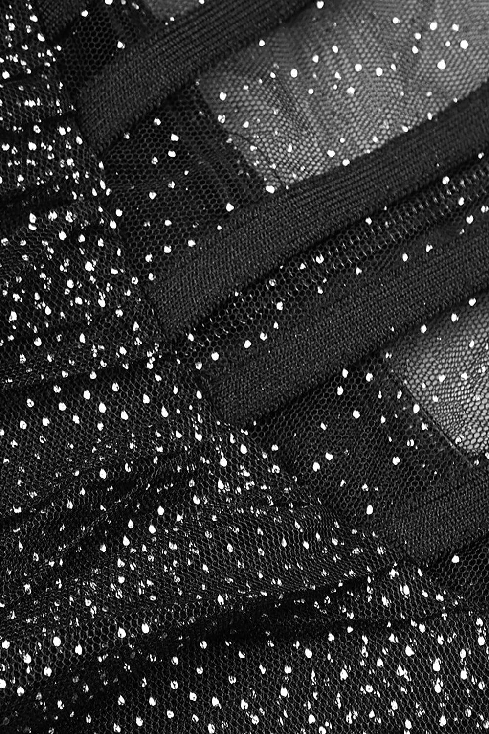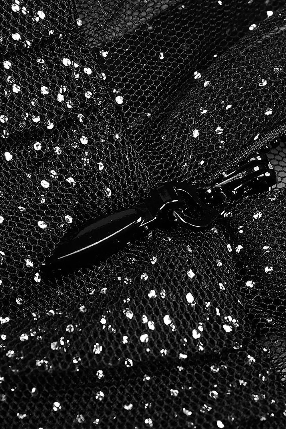 STRAPPY DRAPED RHINESTONE TULLE CORSET MAXI DRESS IN BLACK