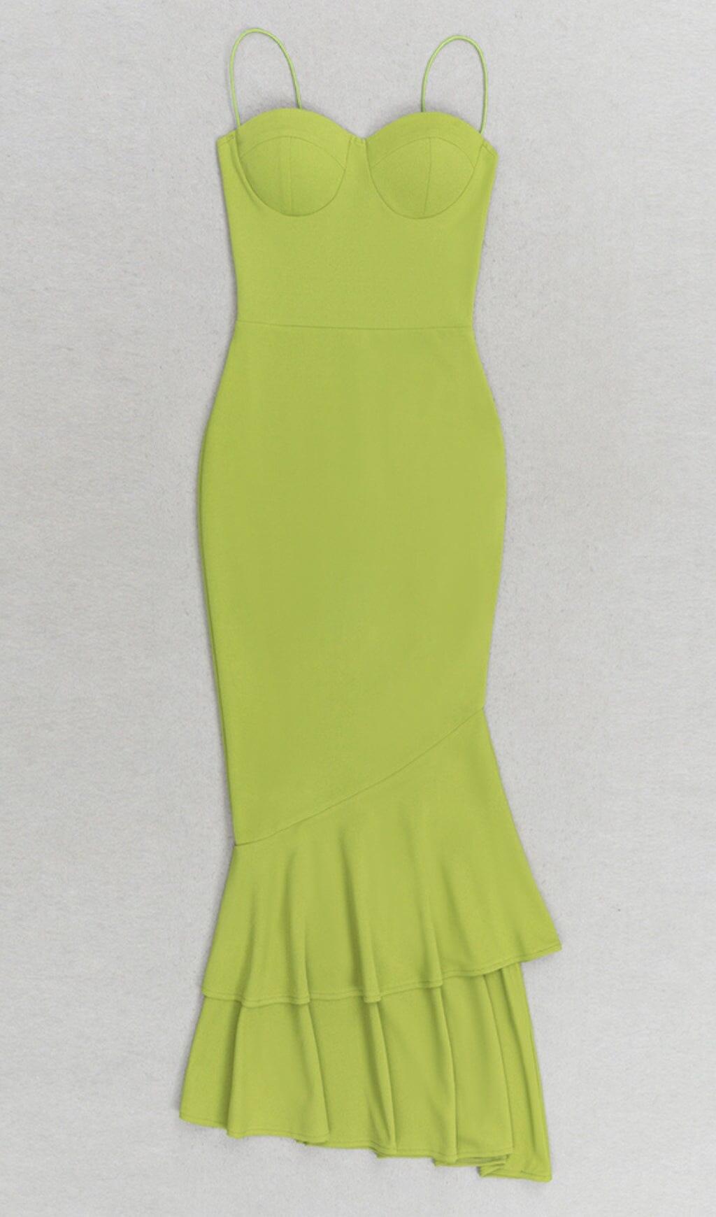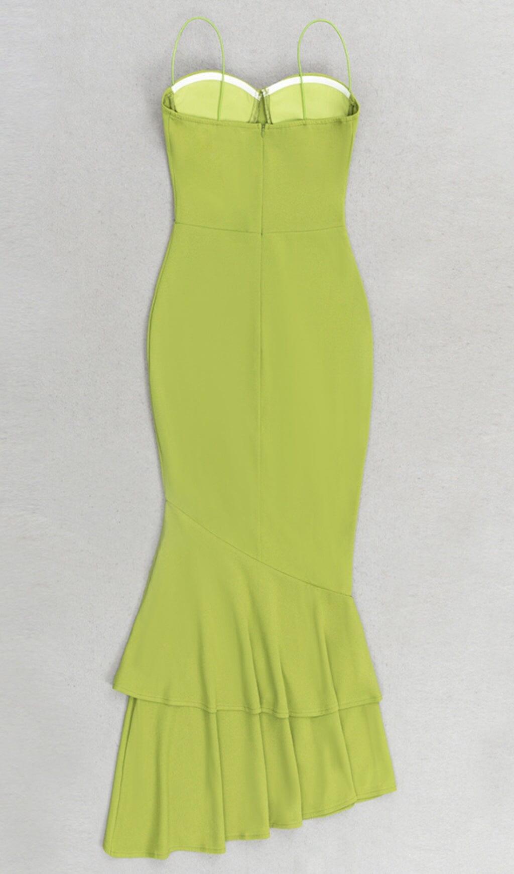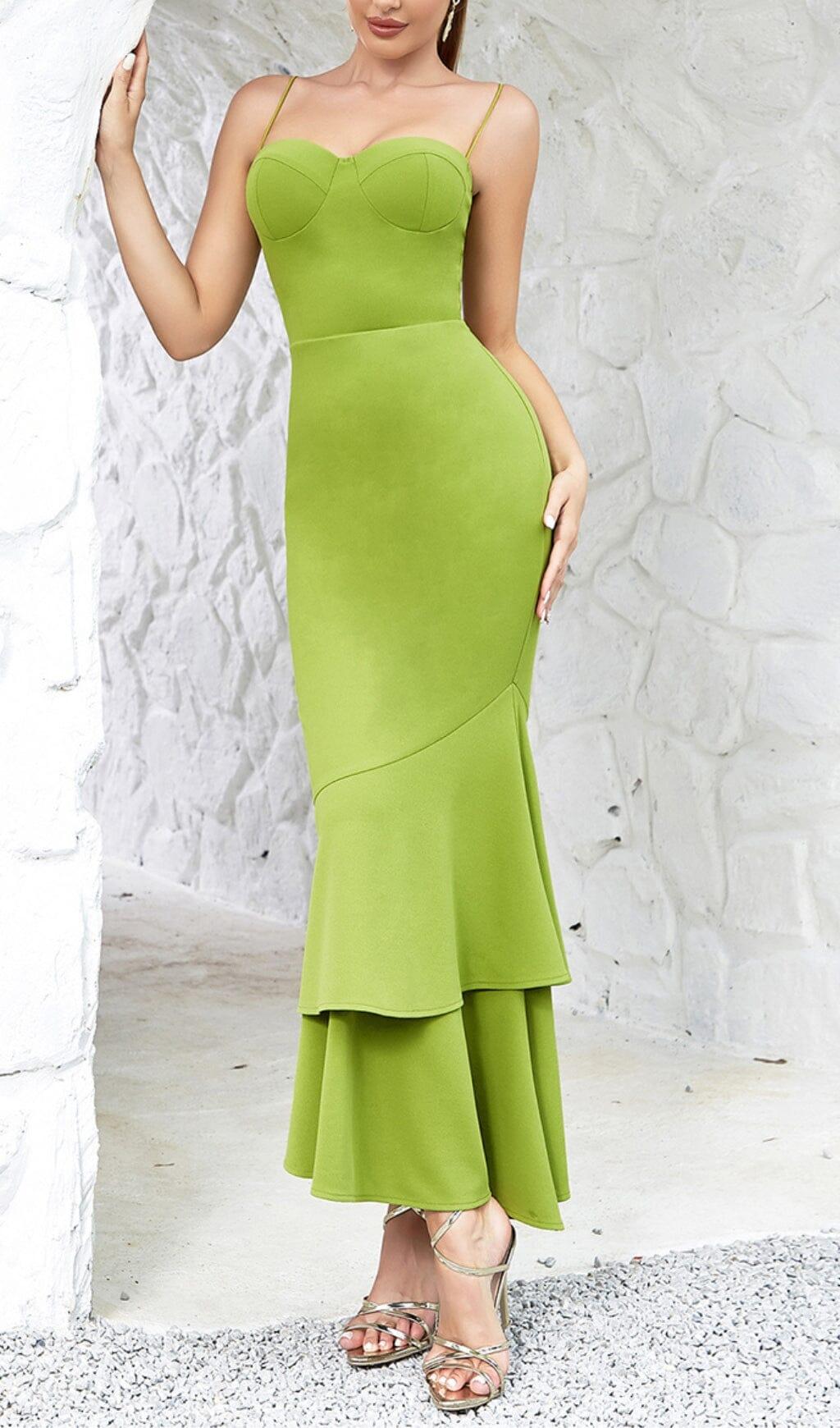 STRAPPY FISHTAIL MAXI DRESS IN GREEN