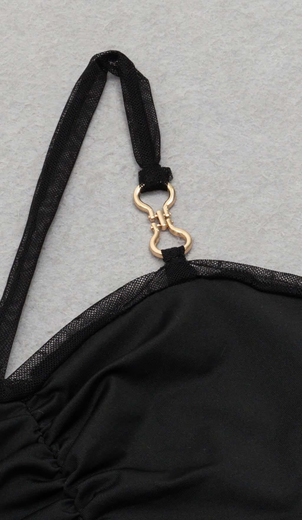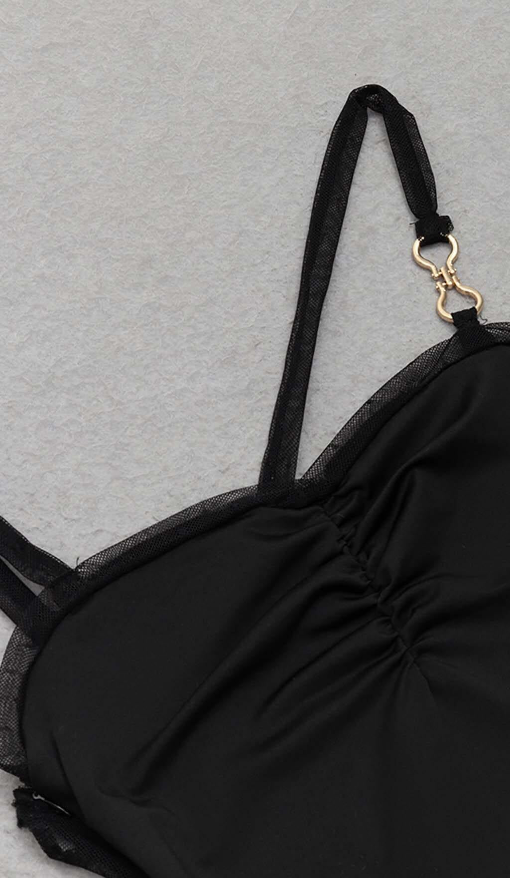 STRAPPY MESH MIDI DRESS IN BLACK