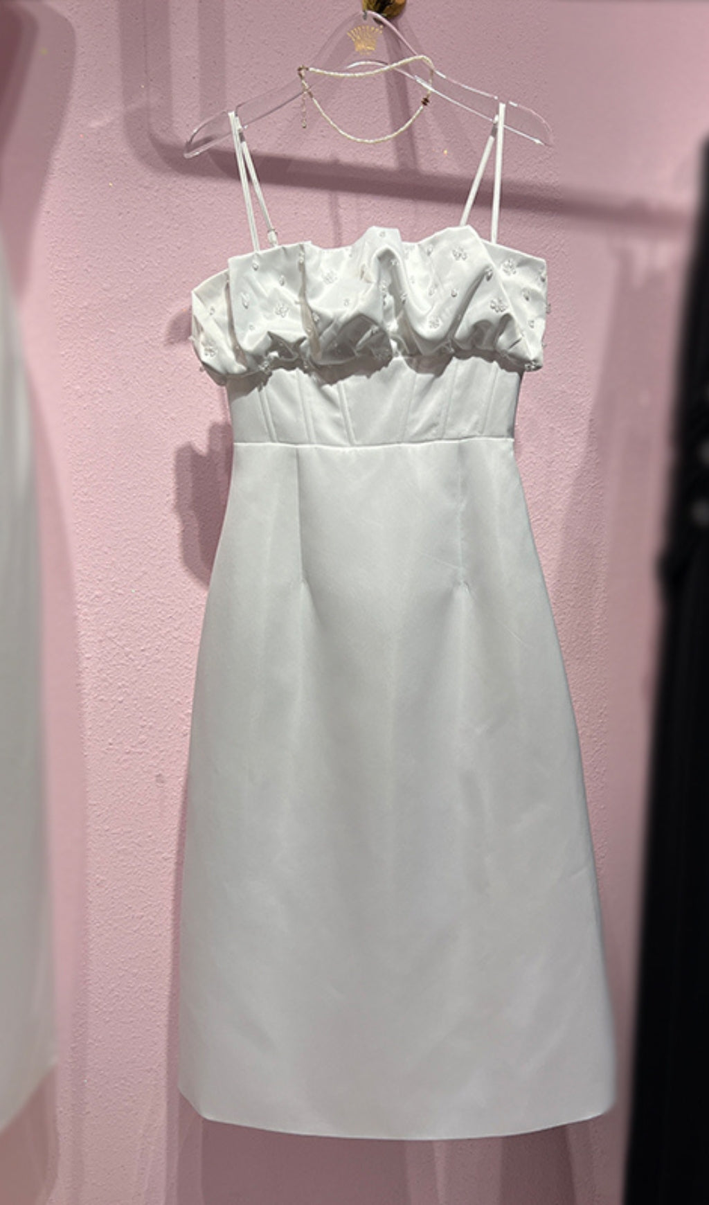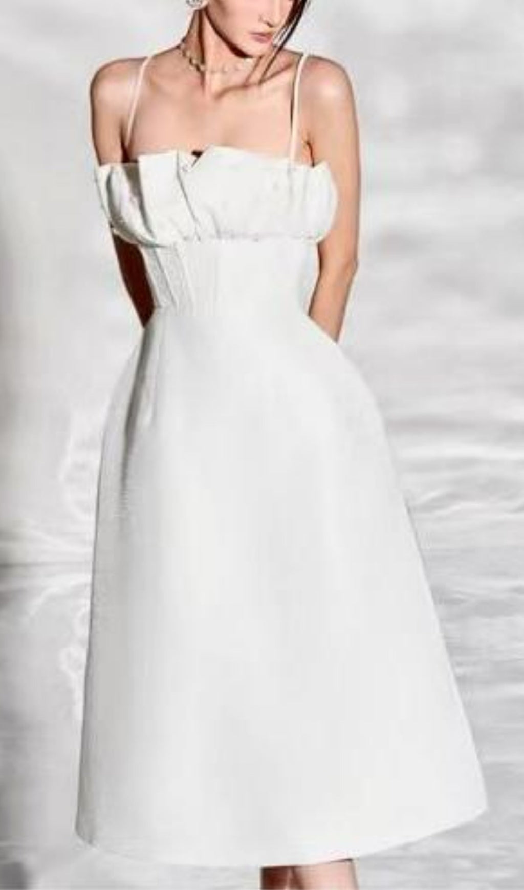 Be a knockout in this strappy, pleated wrap midi dress- perfect for any occasion! With its playful straps and elegant pleats, you'll be sure to turn heads. And bonus - the crisp white color will make you stand out from the crowd.