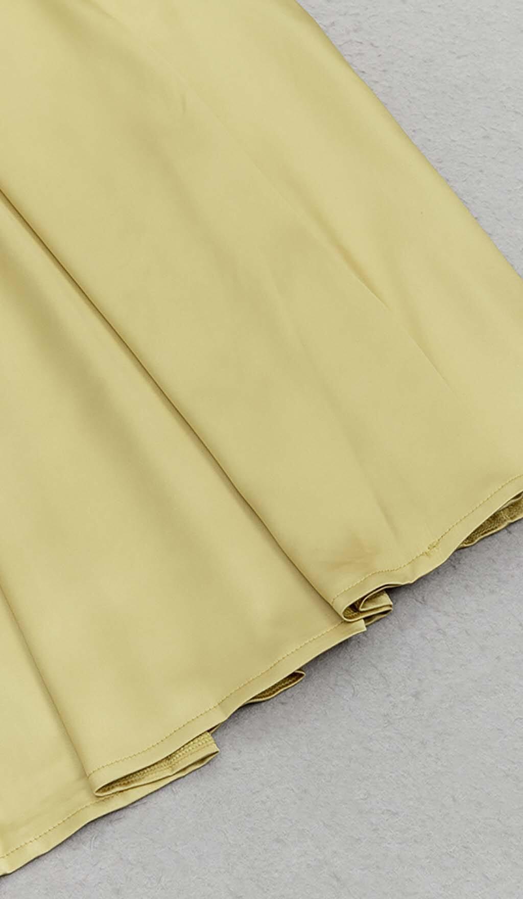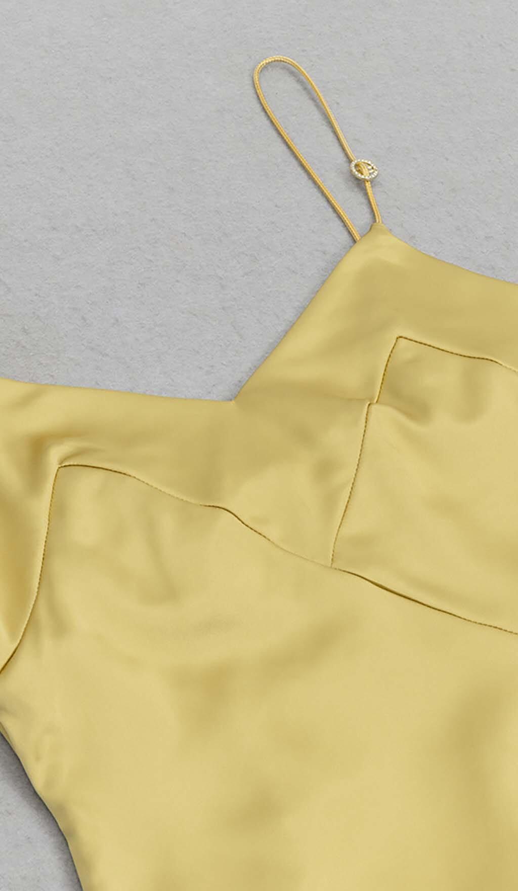 STRAPPY SATIN MIDI DRESS IN PALE OCHRE