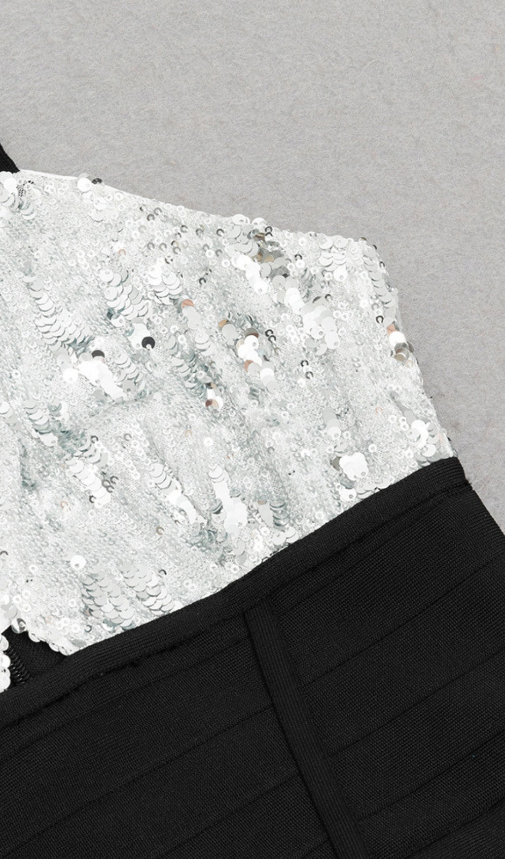 Strappy Sequin - Embellished Bandage Midi Dress in Black