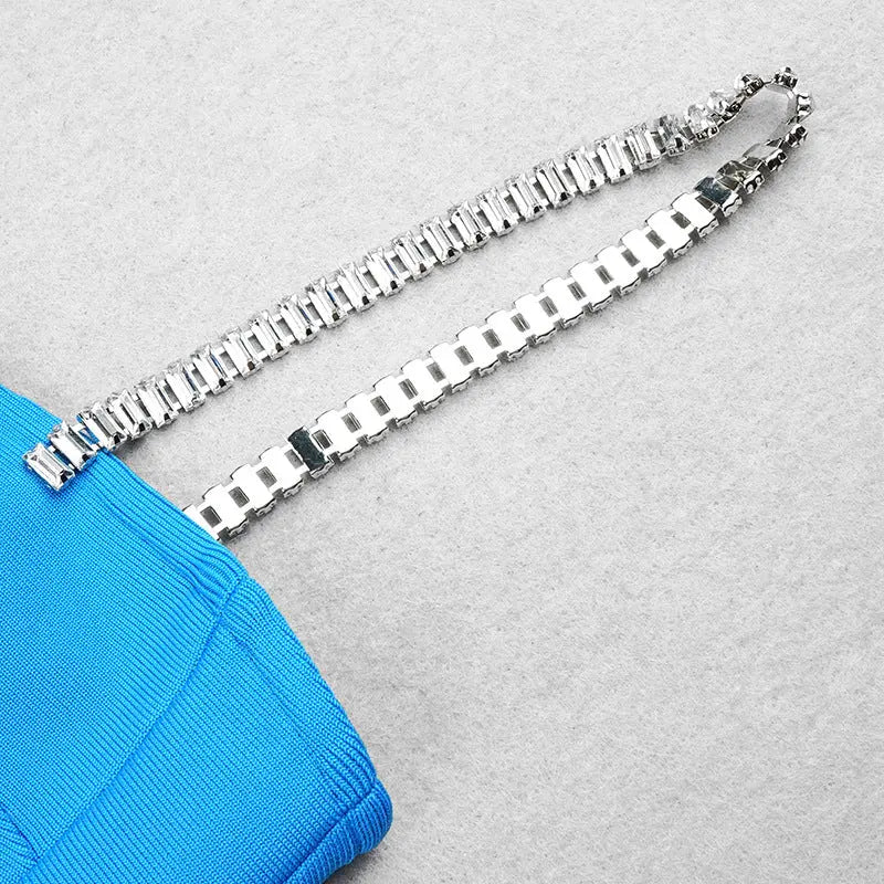 BLUE STRAPPY SLEEVELESS HOLLOW OUT MINI BANDAGE DRESS