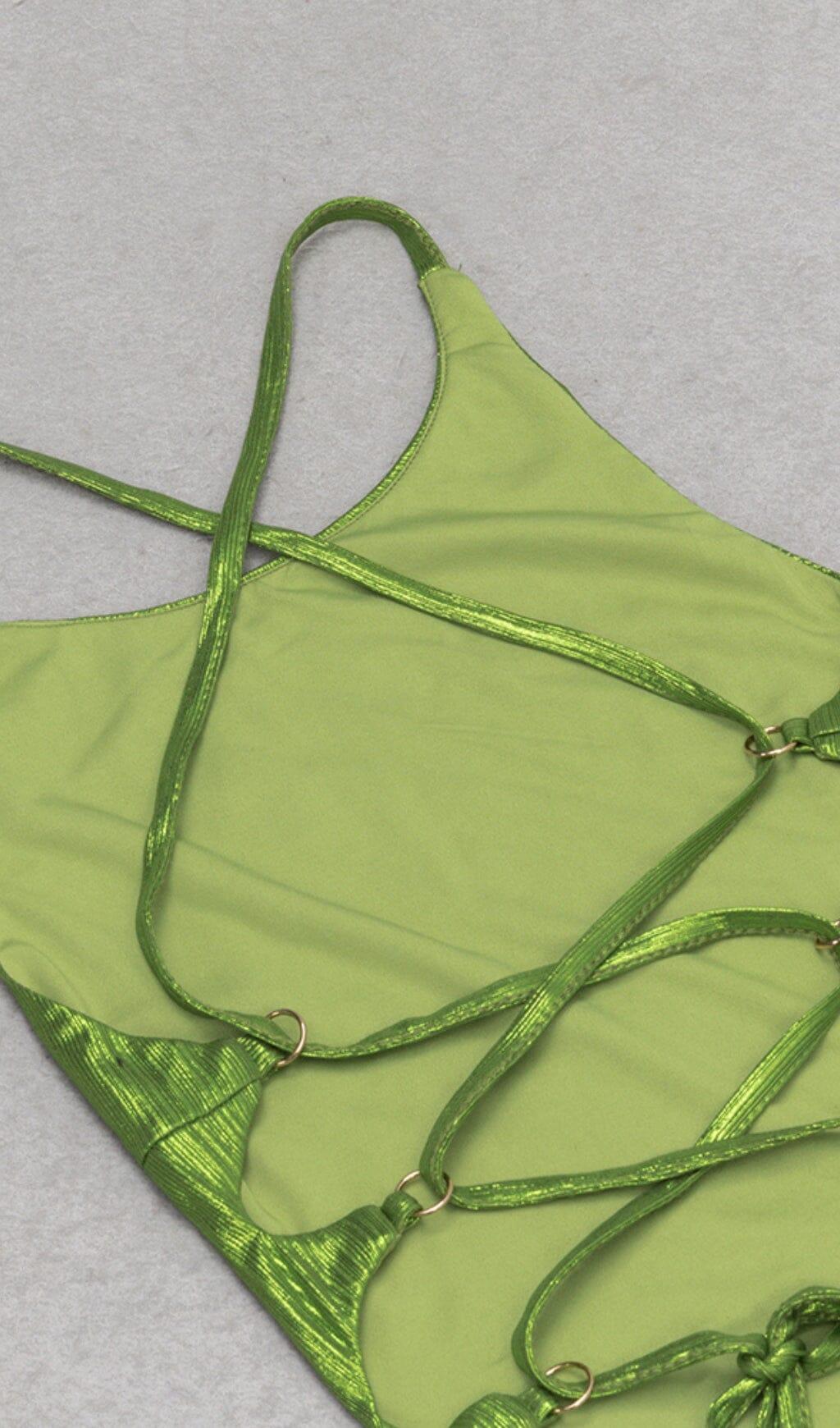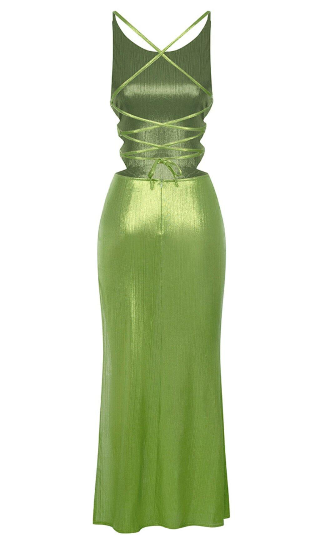 STRAPPY THIGH SLIT MIDI DRESS IN GREEN