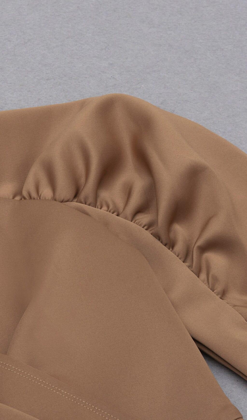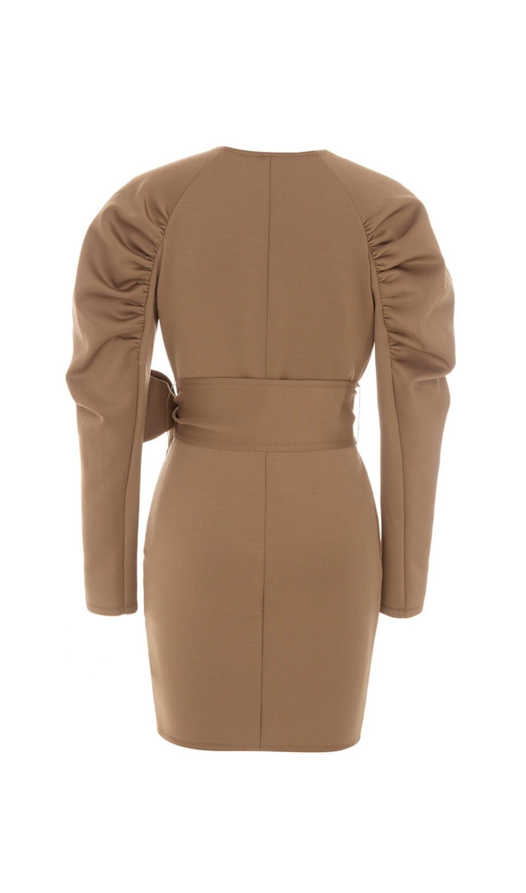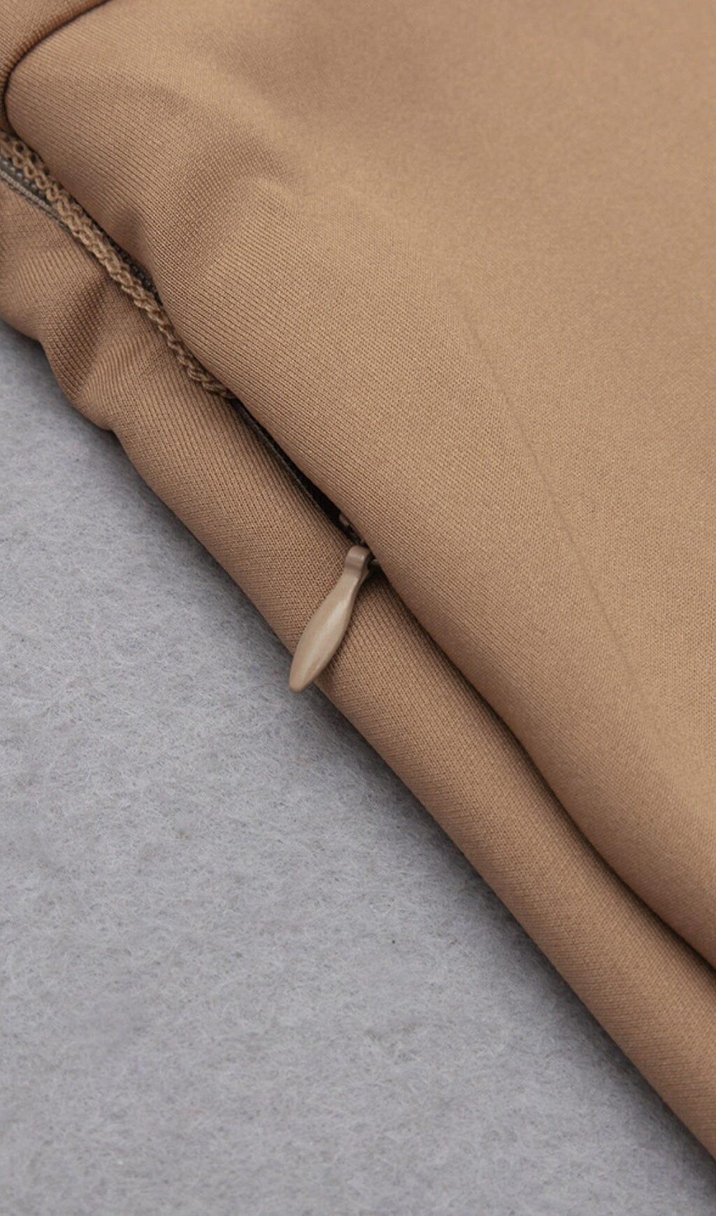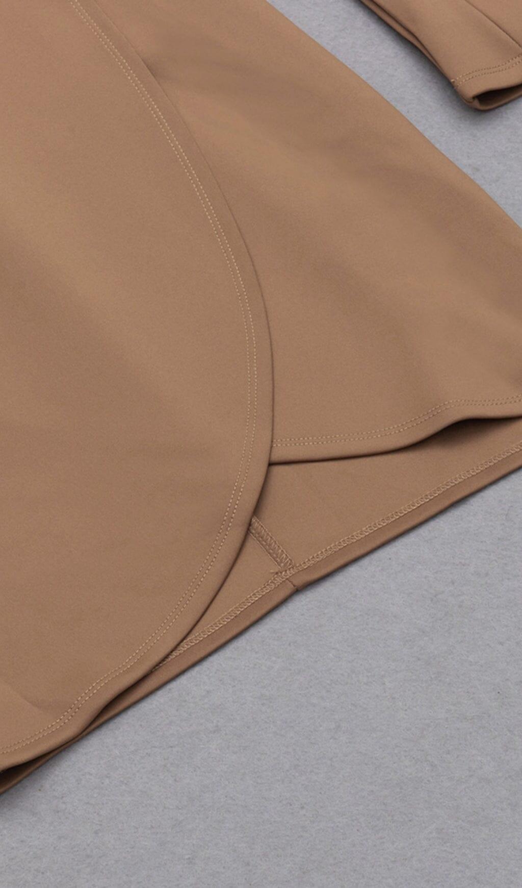 STRETCH LONG SLEEVES MINI DRESS IN PARCHMENT