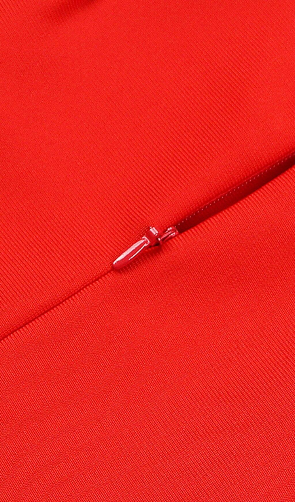 Introducing Our Stretch Strapless Feather Trimmed Gown in Red