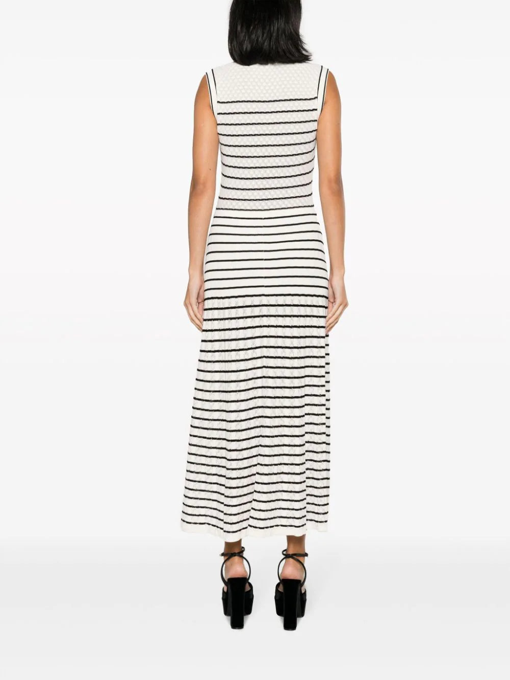Crafted from luxurious knit fabric, this sophisticated piece boasts timeless stripes, flattering silhouette, and effortless style. Perfect for any occasion, this dress promises to elevate your wardrobe with its exclusive design and impeccable quality.
