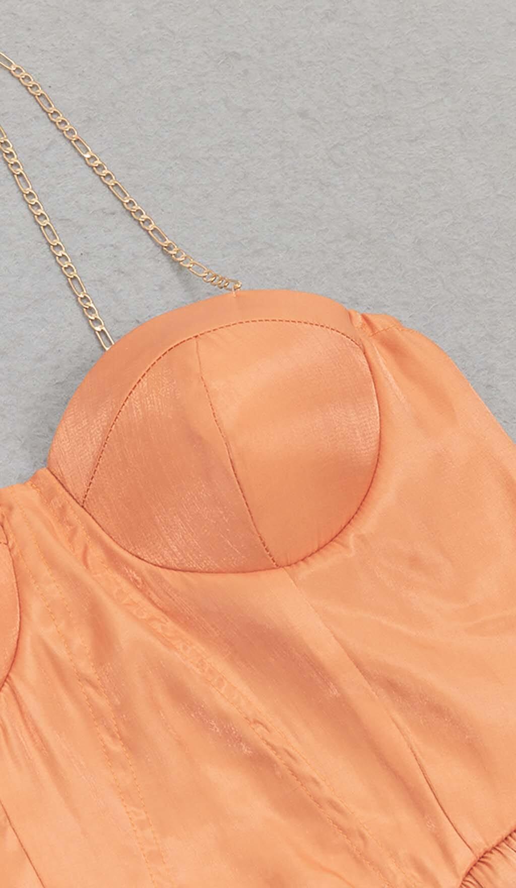 STRUCTURED CORSET DETAIL MINI DRESS IN PEACH