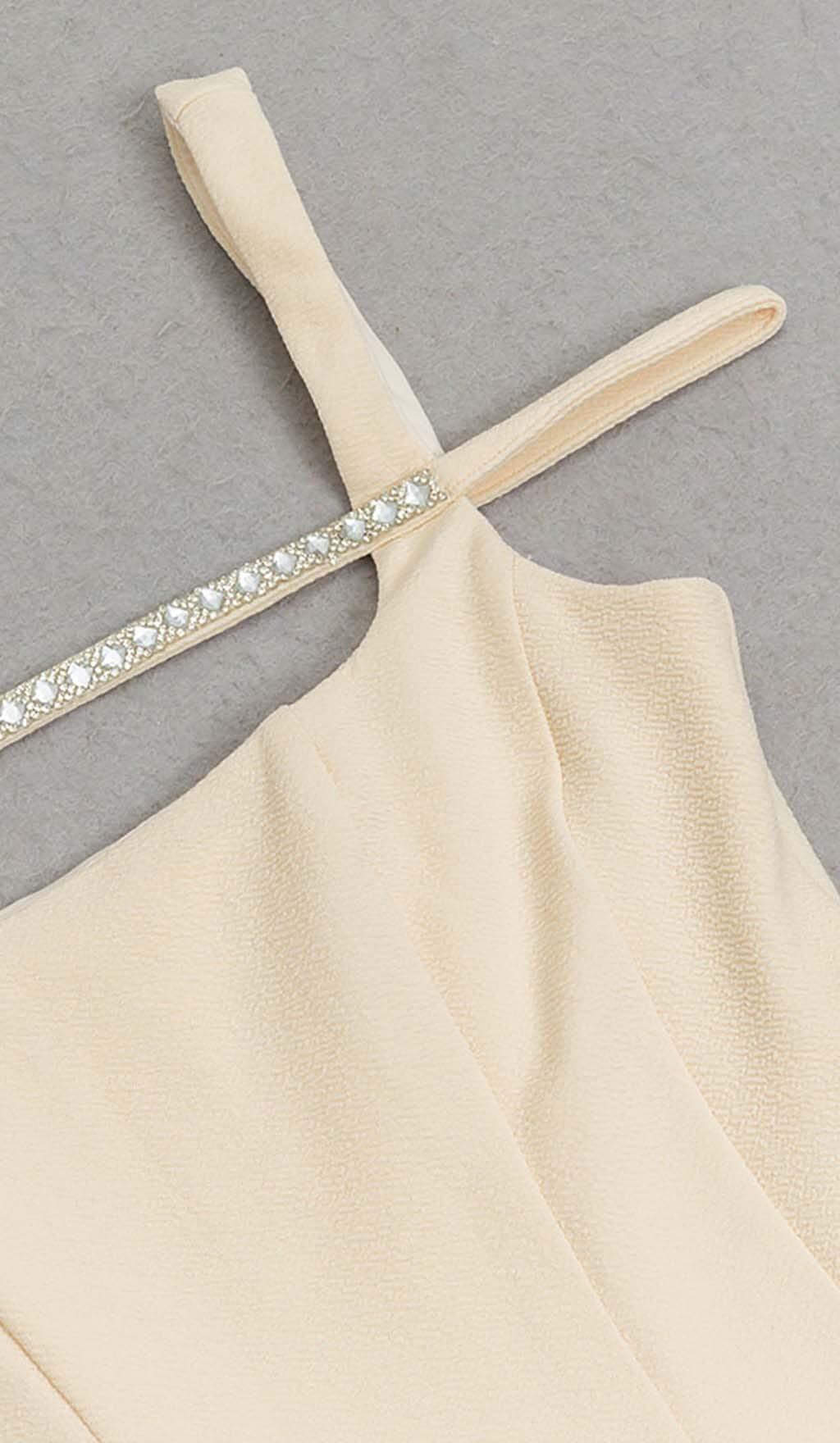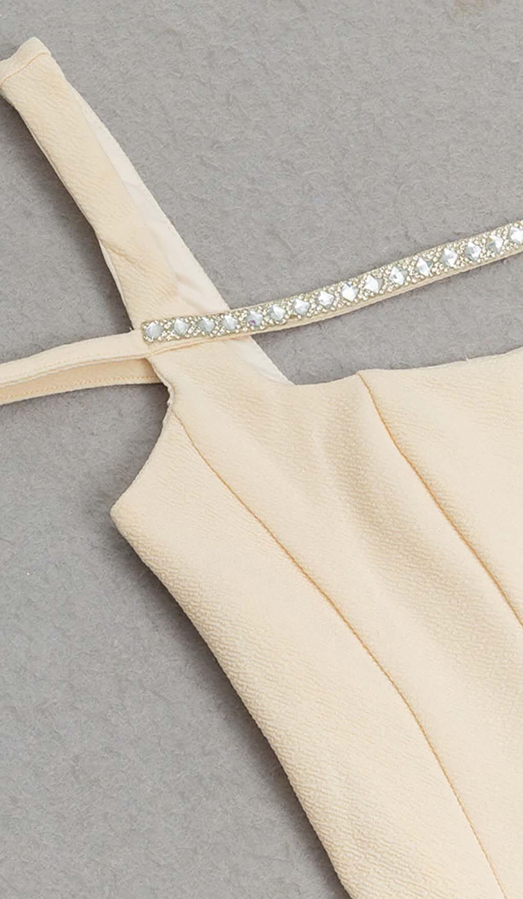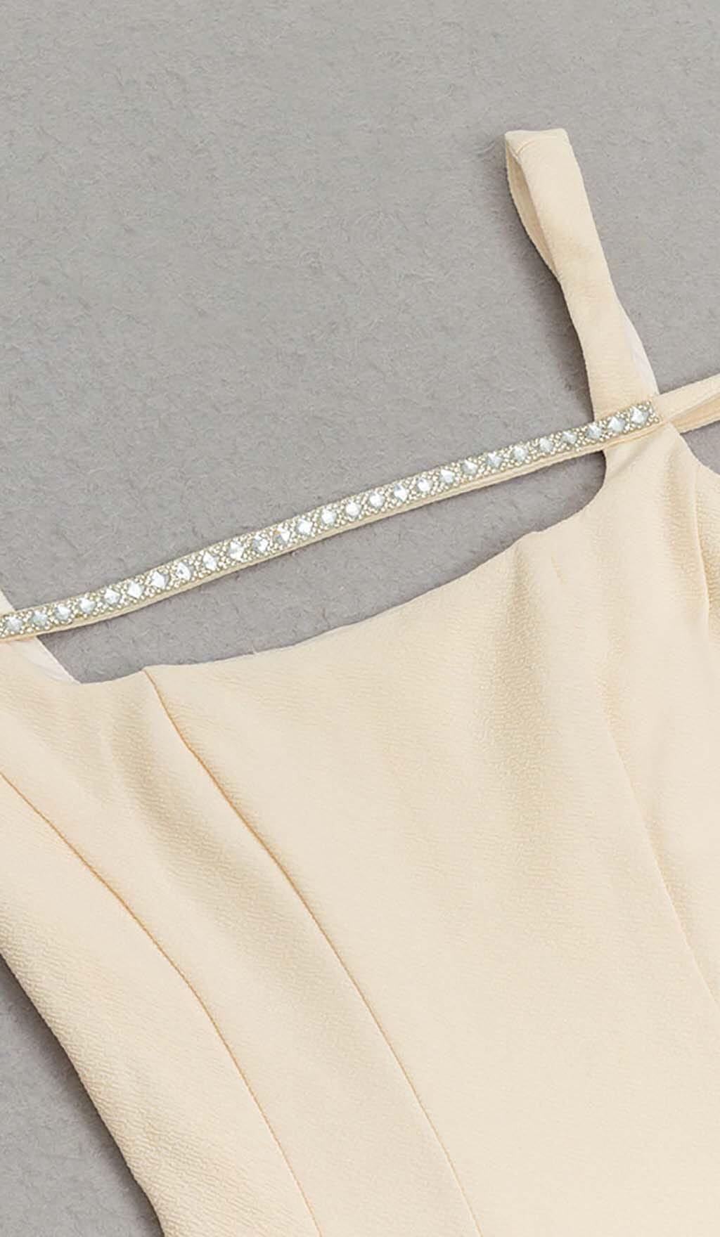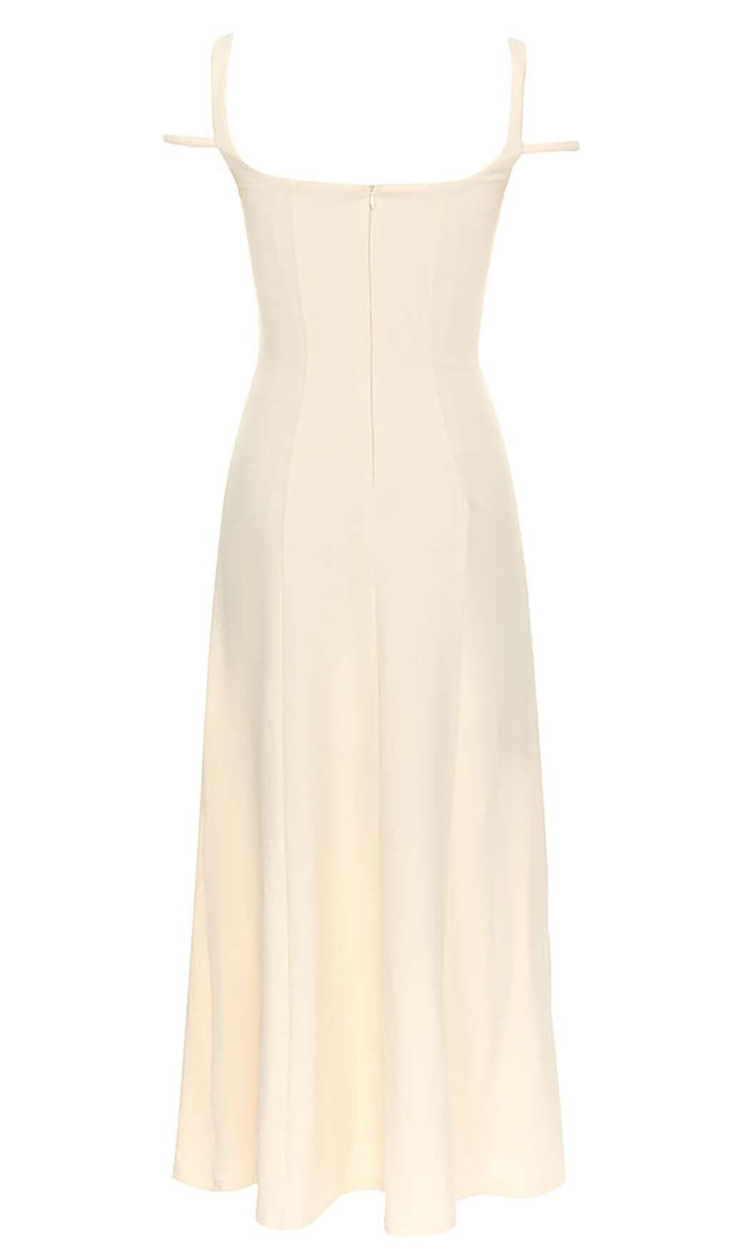 STRUCTURED CORSET FLOUNCED MIDI DRESS IN IVORY